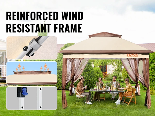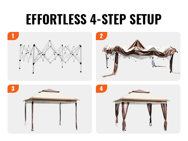 Con quattro disegni protettivi, il nostro gazebo da cortile è pronto per affrontare qualsiasi tempo che ti fa strada durante il viaggio in campeggio.