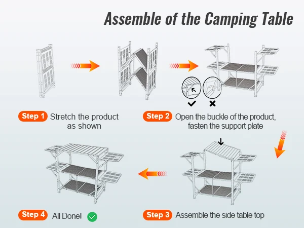 Ready for Any Adventure: Whether you’re RV traveling, camping, picnicking, hosting a backyard BBQ, or just enjoying a night under the stars, our camping table is the ideal solution for all your outdoor needs. It provides a sturdy surface for placing and storing items, while enhancing your overall outdoor experience.