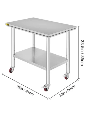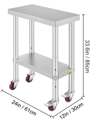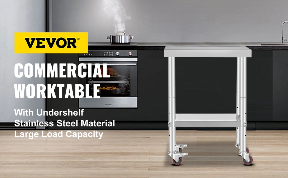 Tavolo da lavoro commerciale superiore. Costruito in acciaio inossidabile durevole, resistente alla corrosione e all’usura; 4 ruote di cottura forniscono flessibilità. Puoi cambiare facilmente l’altezza del ripiano inferiore-perfetto utilizzo in cucina, ristorante, scuola o altre applicazioni domestiche o commerciali.