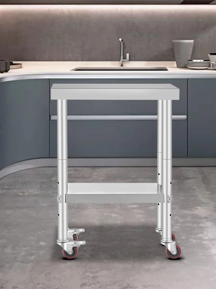 Un grande vantaggio di questo tavolo per la preparazione degli alimenti è la sua flessibilità. Il ripiano inferiore può essere rialzato o ribassato in base alle dimensioni delle cose che vuoi posizionare sul tavolo da lavoro.