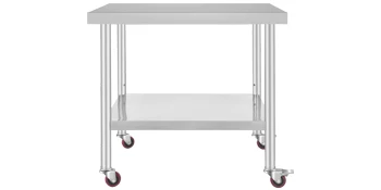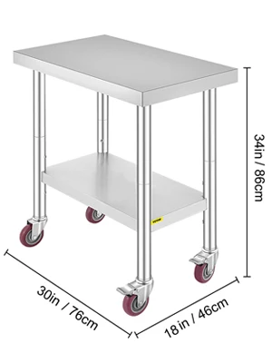Questo tavolo di preparazione in acciaio inossidabile è montato su 4 ruote a rotelle, rendendo il tavolo si muove senza intoppi e mantiene stabile. Due ruote hanno un freno integrato;