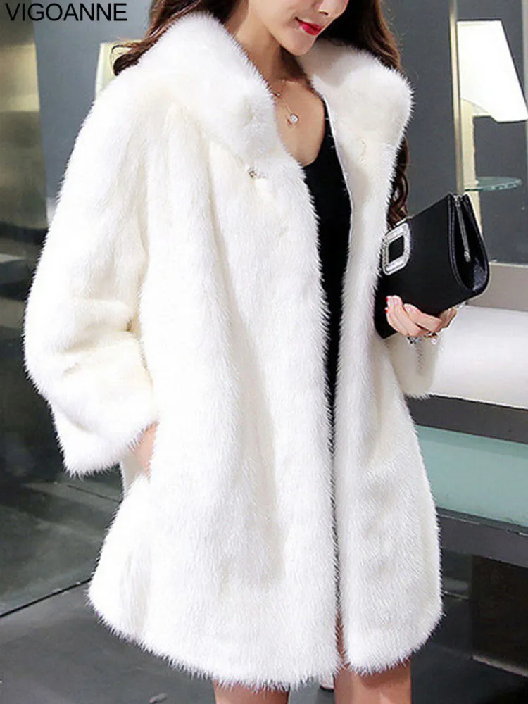 VigoAnne 2025 Cappotto invernale da donna in pelliccia sintetica bianca Giacca casual a maniche lunghe corta in peluche Lady spessa pelliccia finta calda e soffice capispalla