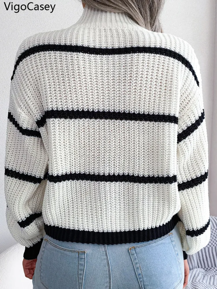 VigoCasey 2025 inverno collo alto maglione lavorato a maglia a righe donna casual pullover allentato autunno signora lanterna manica lunga maglione caldo