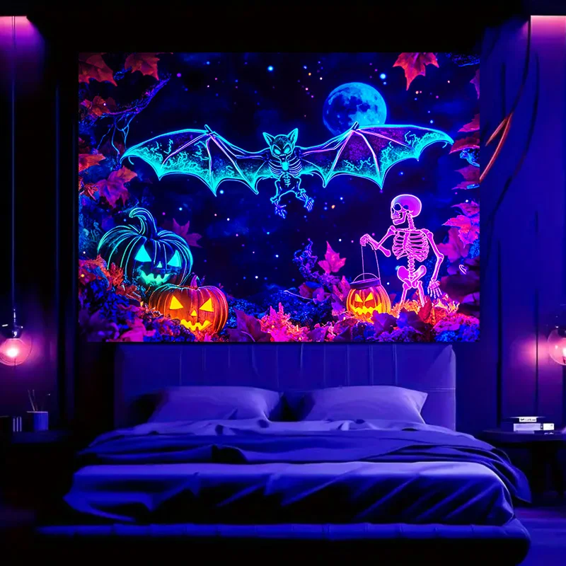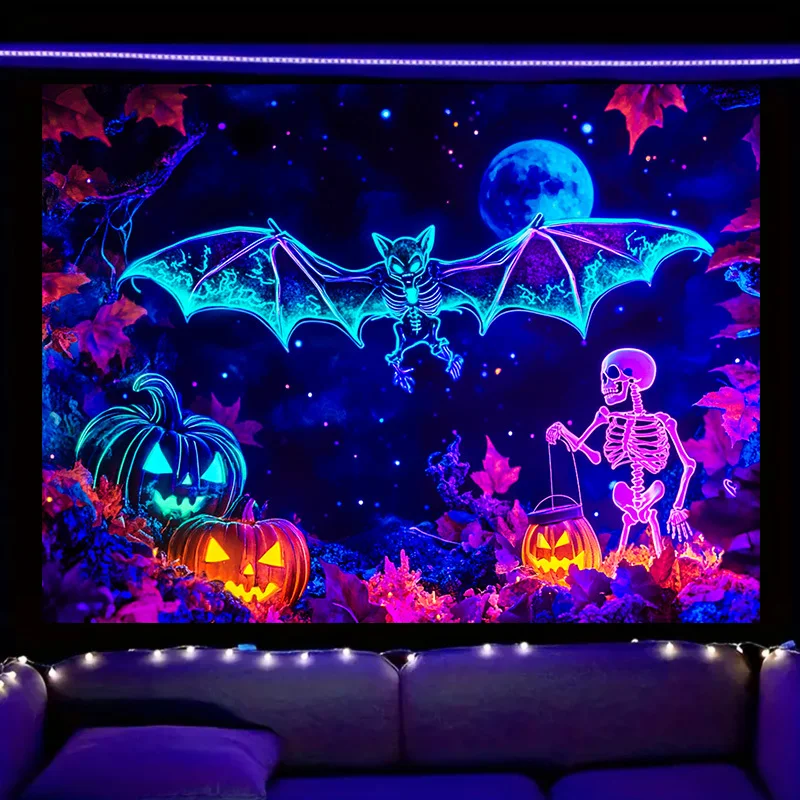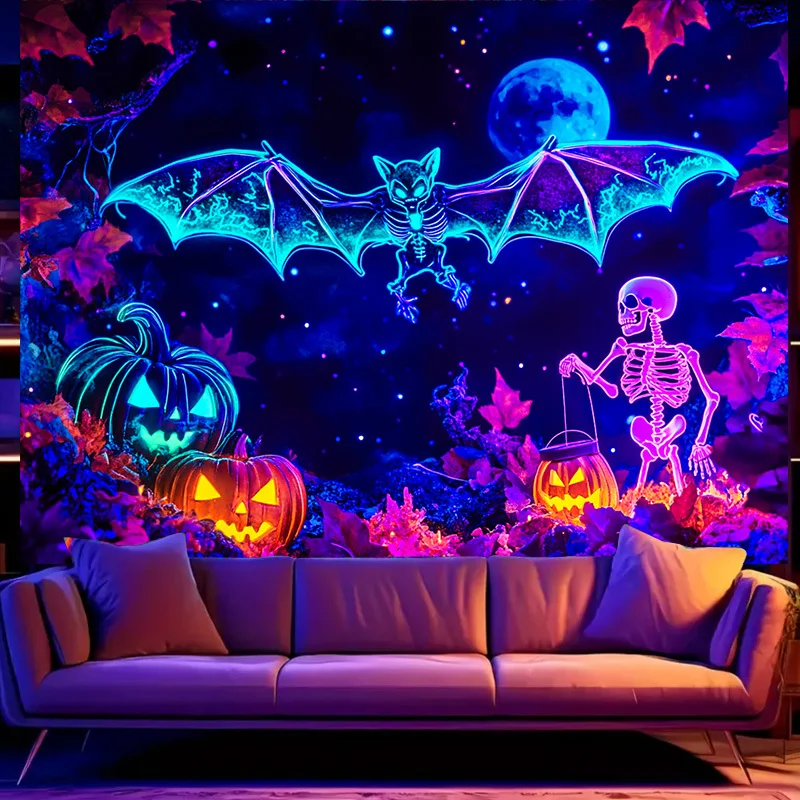 VIKAMA Arazzo di Halloween Pipistrello Zucca Scheletro Decorazione della sala giochi per feste Decorazione in stile Cyberpunk
