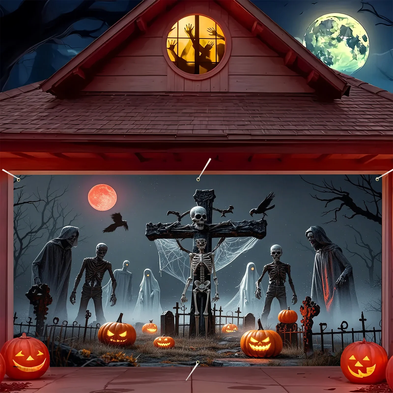 VIKAMA Bandiera da garage in poliestere a tema Halloween – Design con teschio horror, zucca, pipistrello e teschio, decorazione di Halloween