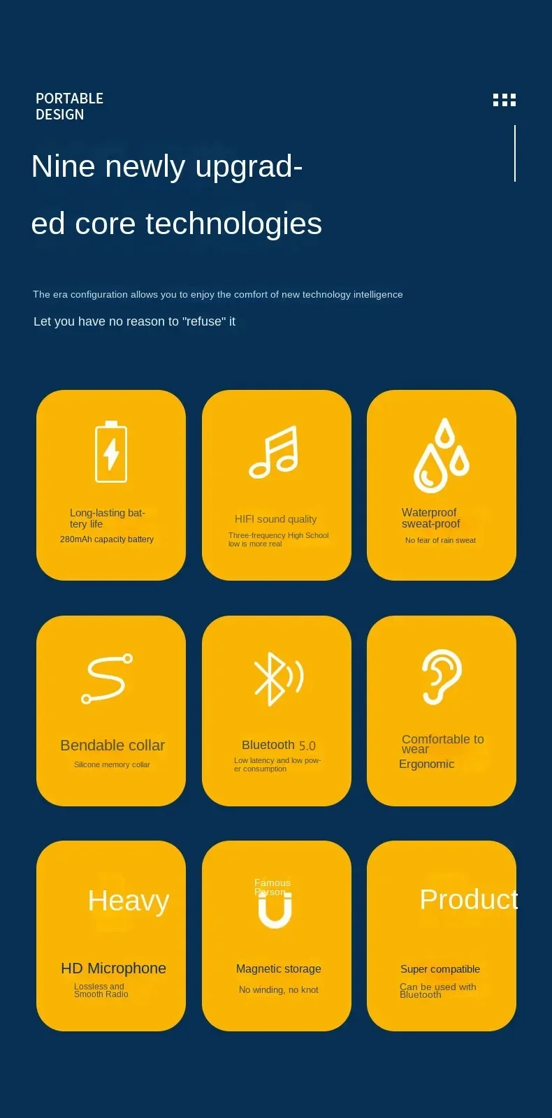 Il chip Bluetooth 5.0 porta trasmissione ad alta velocità e stabile, che ha una forte capacità di anti-interferenza.Sentiamo comodamente da indossare all'auricolare dal design ergonomico.