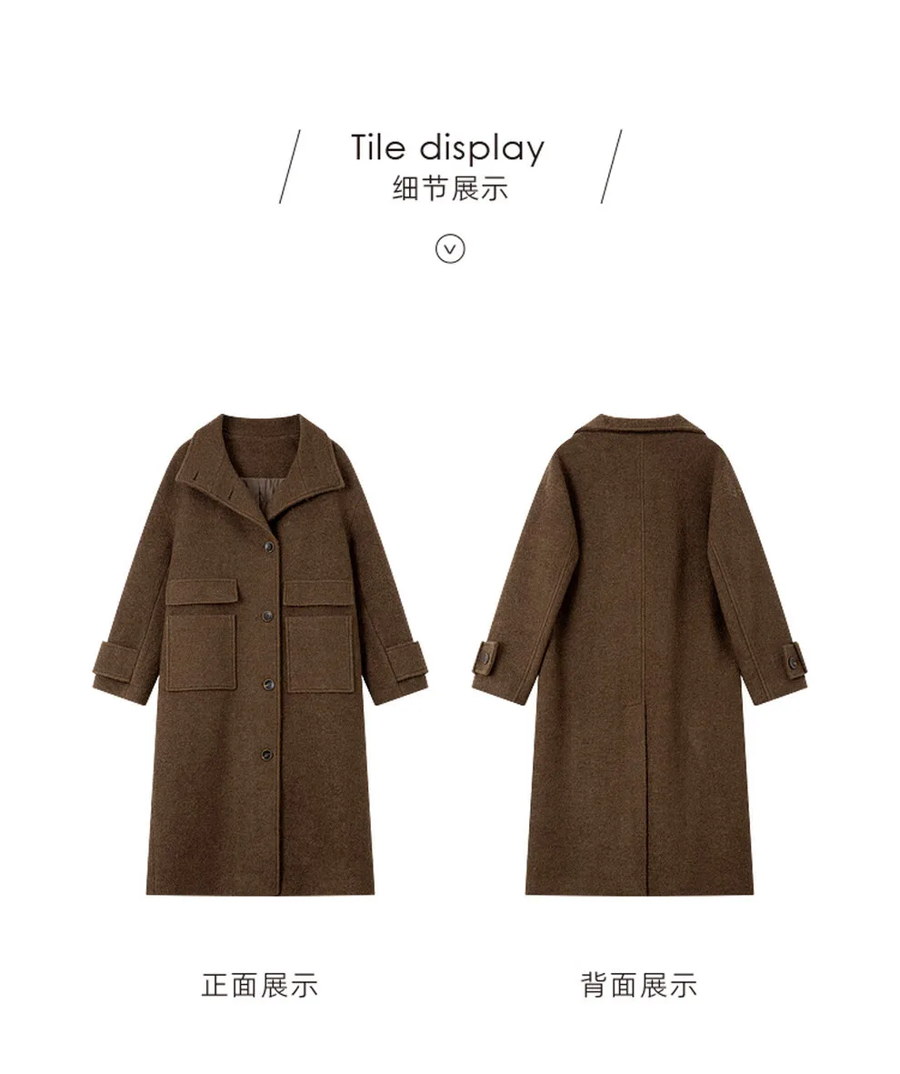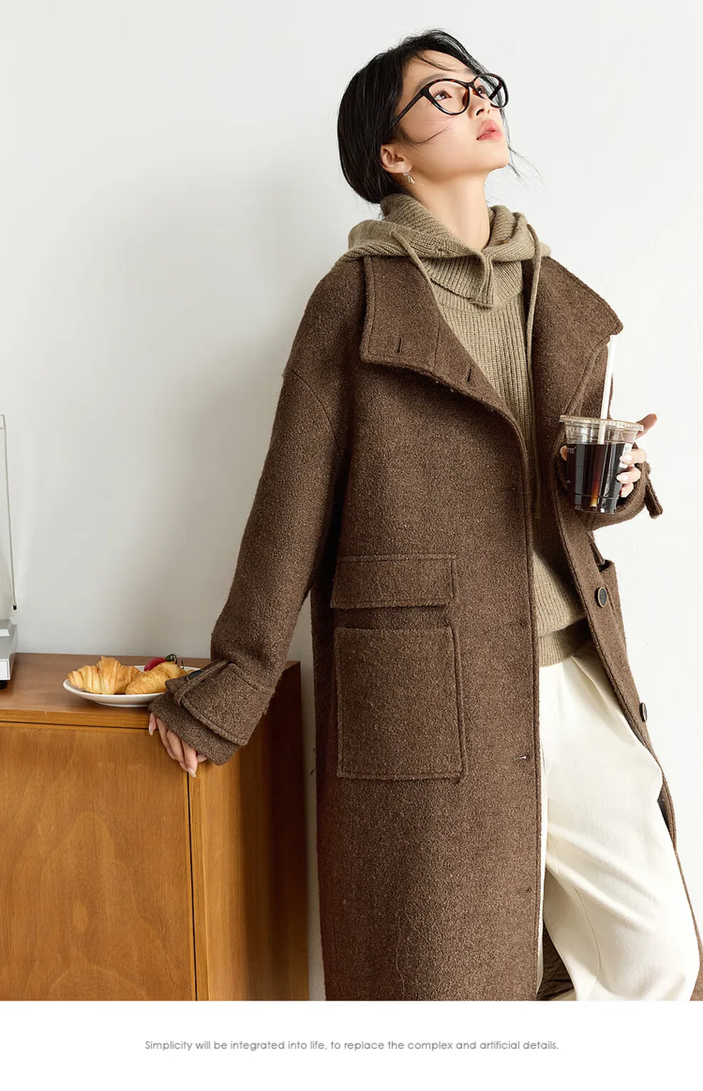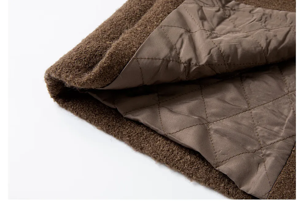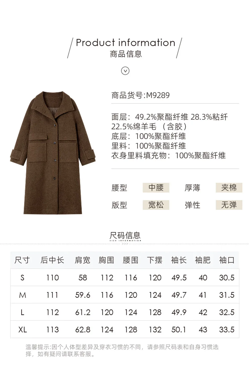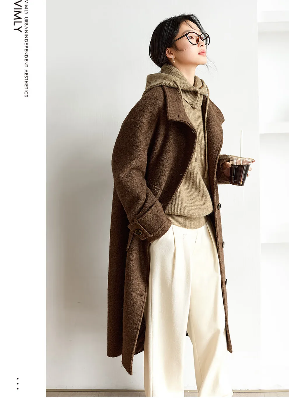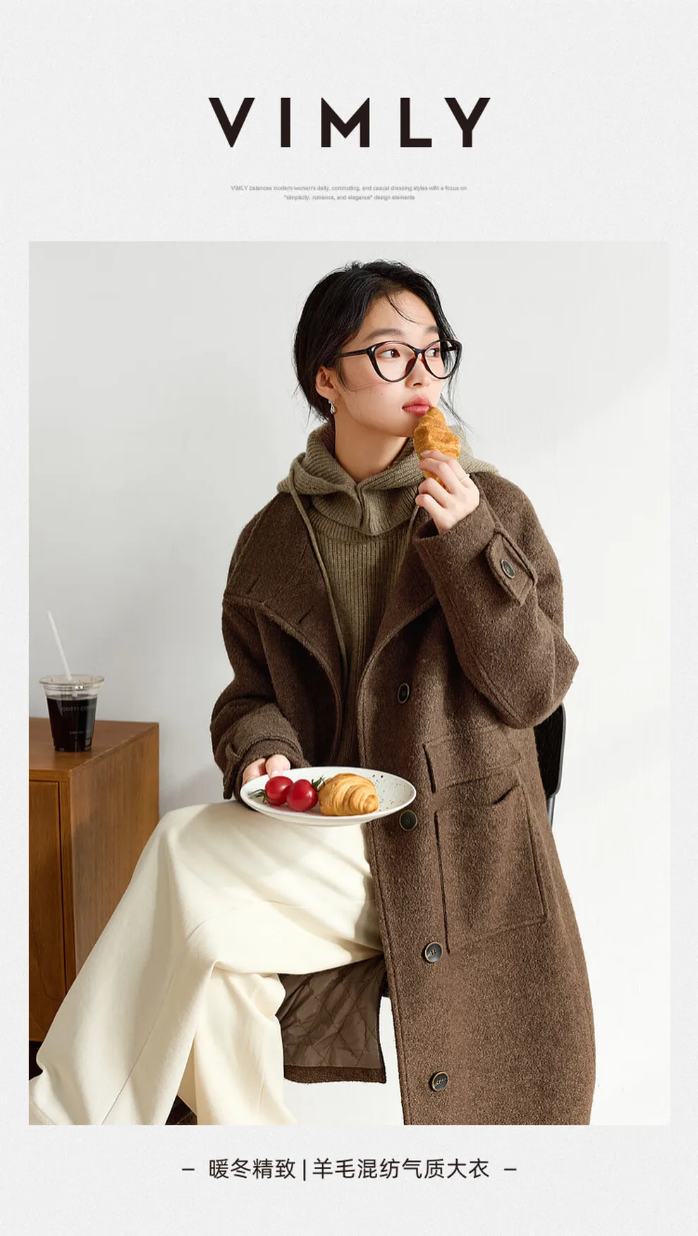 VIMLY Donna Inverno Marrone Cappotti Lunghi 2025 Abbigliamento da Ufficio Stand Collo Cappotti di Lana Vintage Allentato Trapuntato Tweed Cappotto Femminile M9289