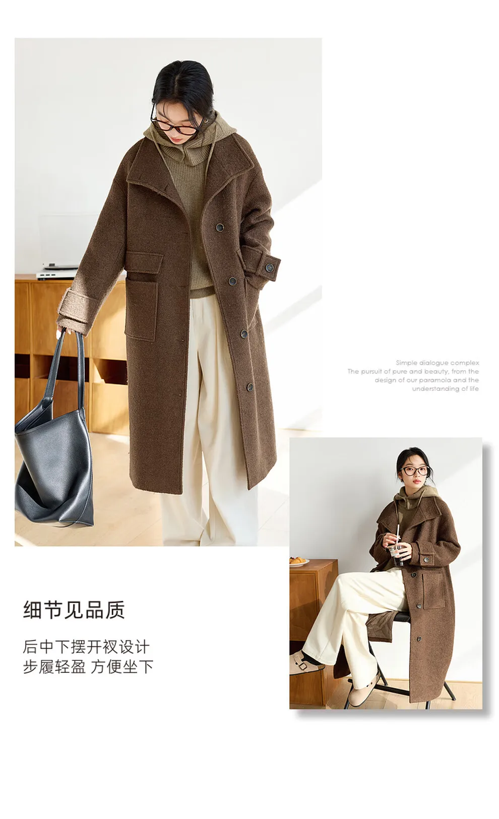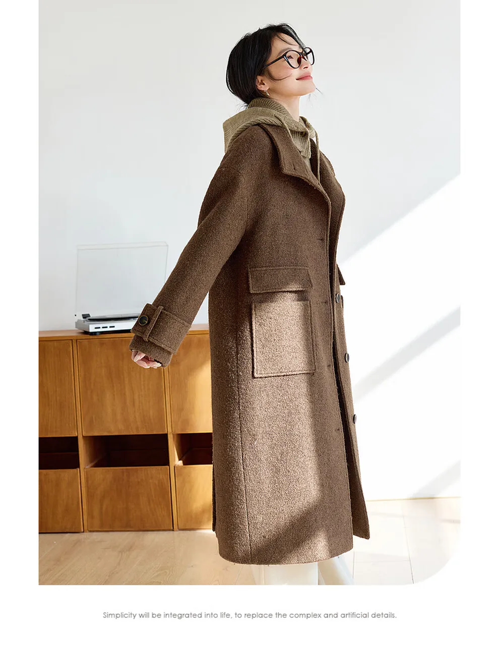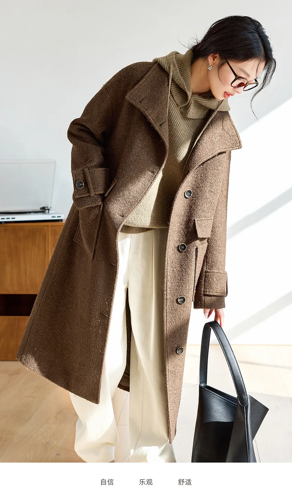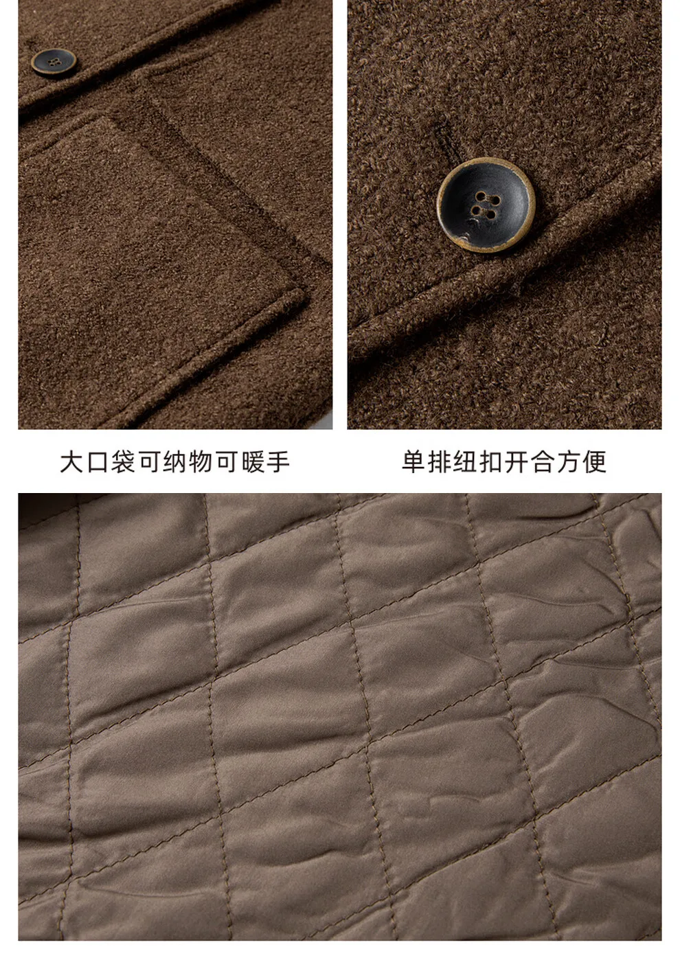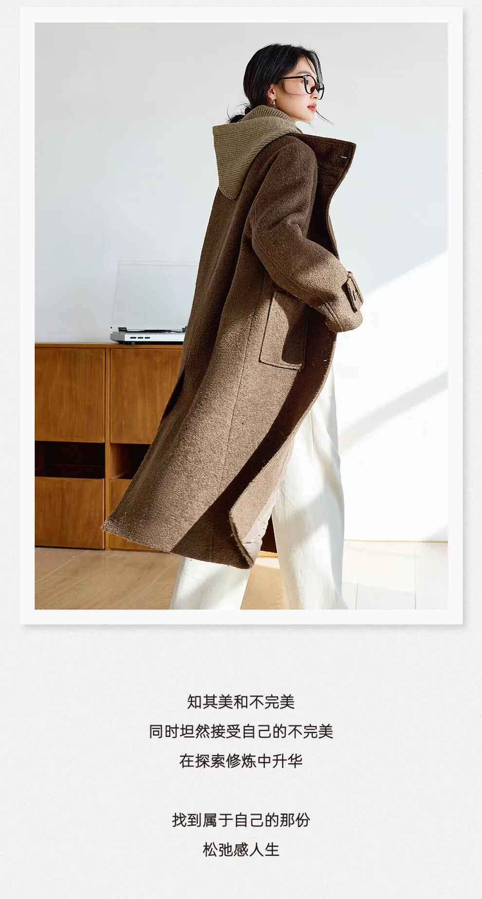 VIMLY Donna Inverno Marrone Cappotti Lunghi 2025 Abbigliamento da Ufficio Stand Collo Cappotti di Lana Vintage Allentato Trapuntato Tweed Cappotto Femminile M9289