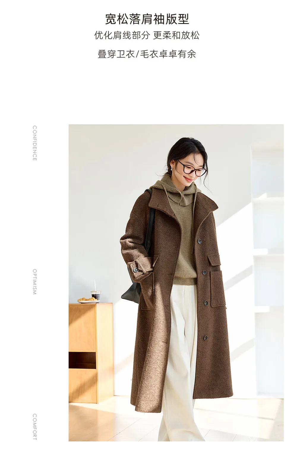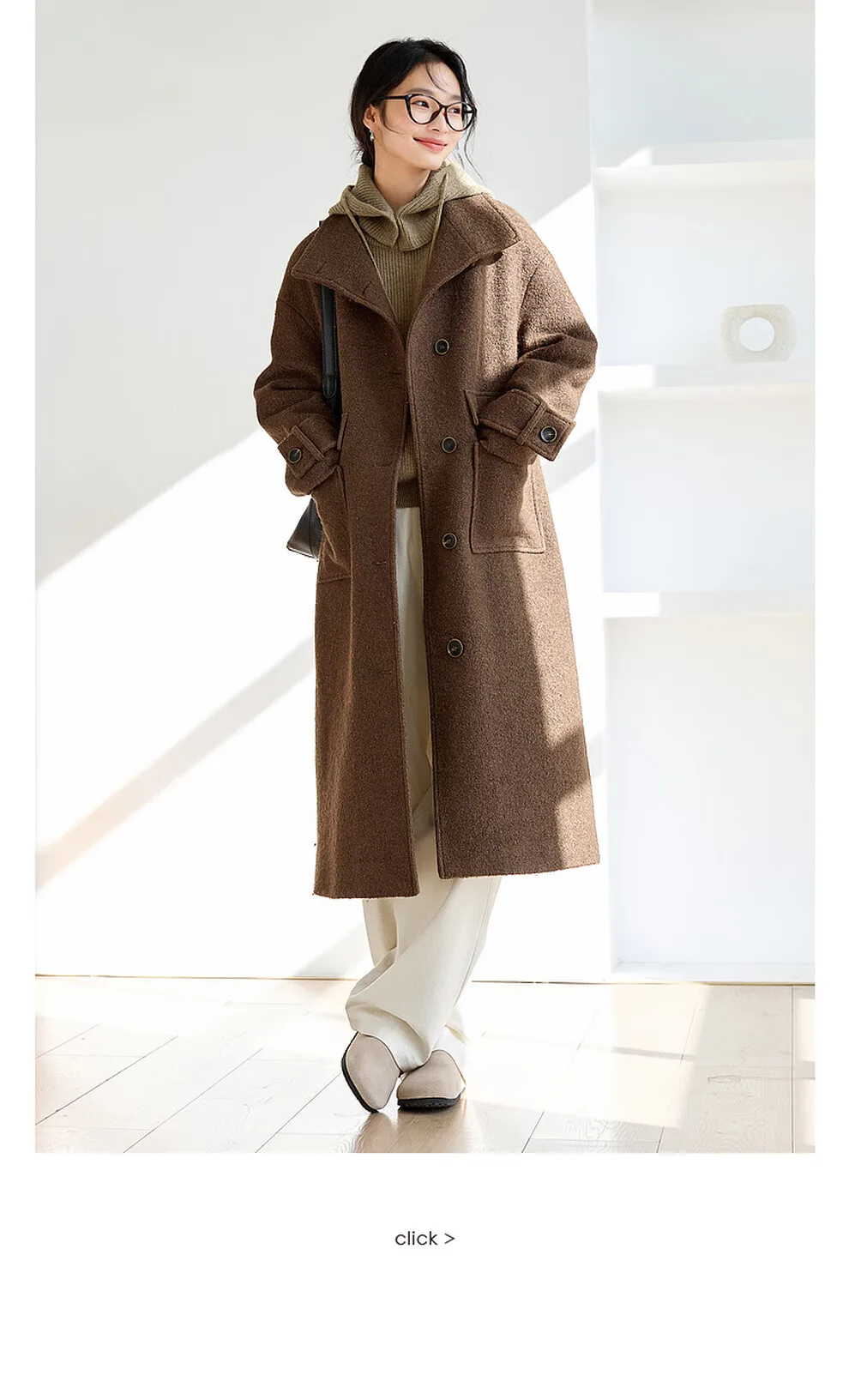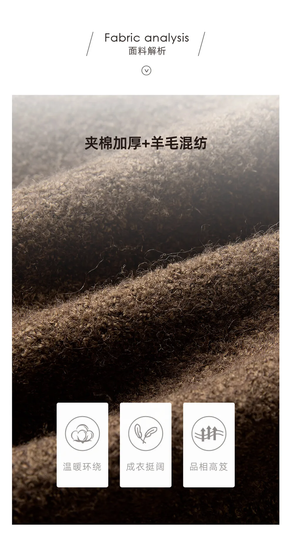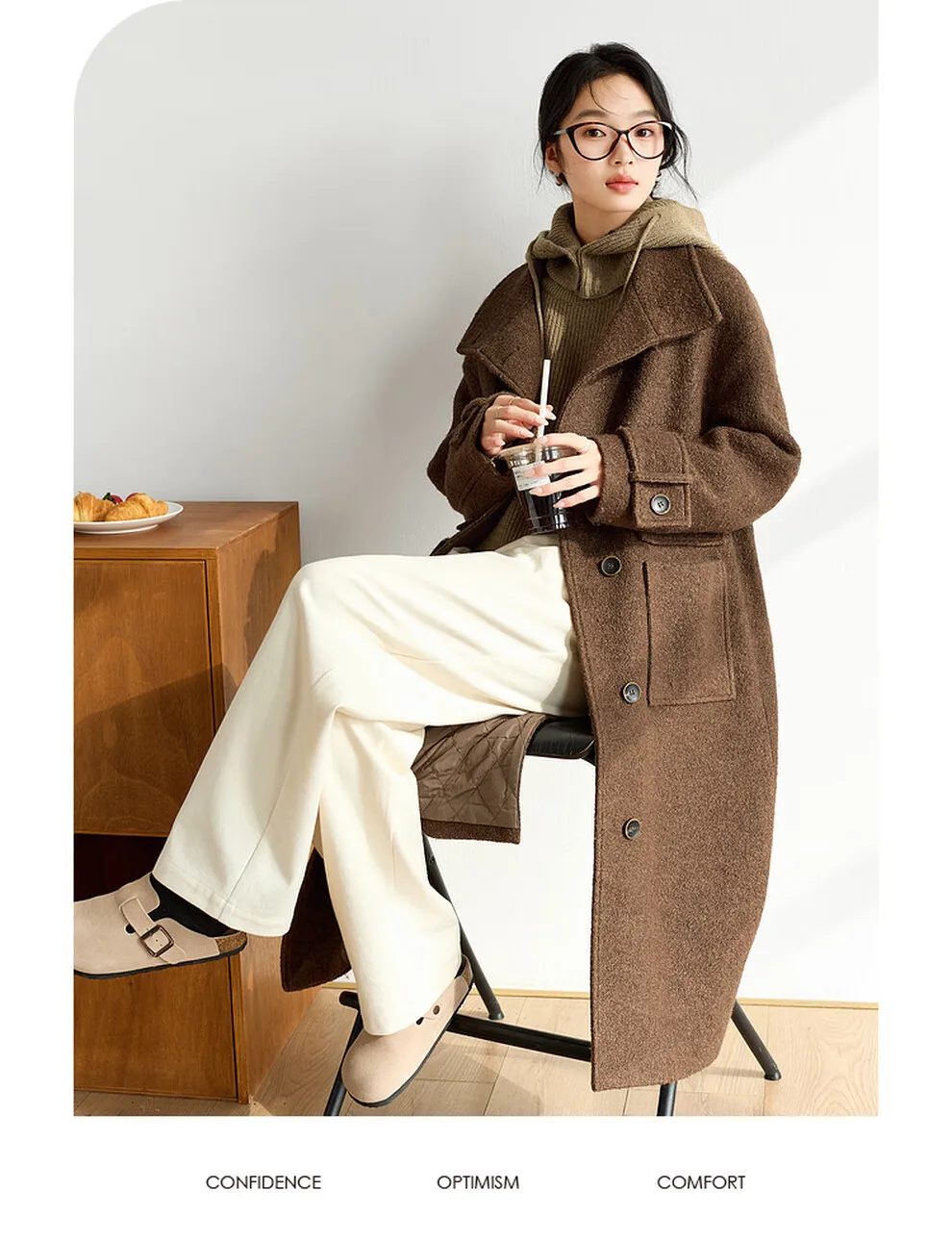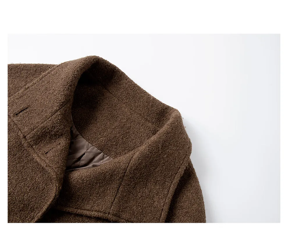 VIMLY Donna Inverno Marrone Cappotti Lunghi 2025 Abbigliamento da Ufficio Stand Collo Cappotti di Lana Vintage Allentato Trapuntato Tweed Cappotto Femminile M9289