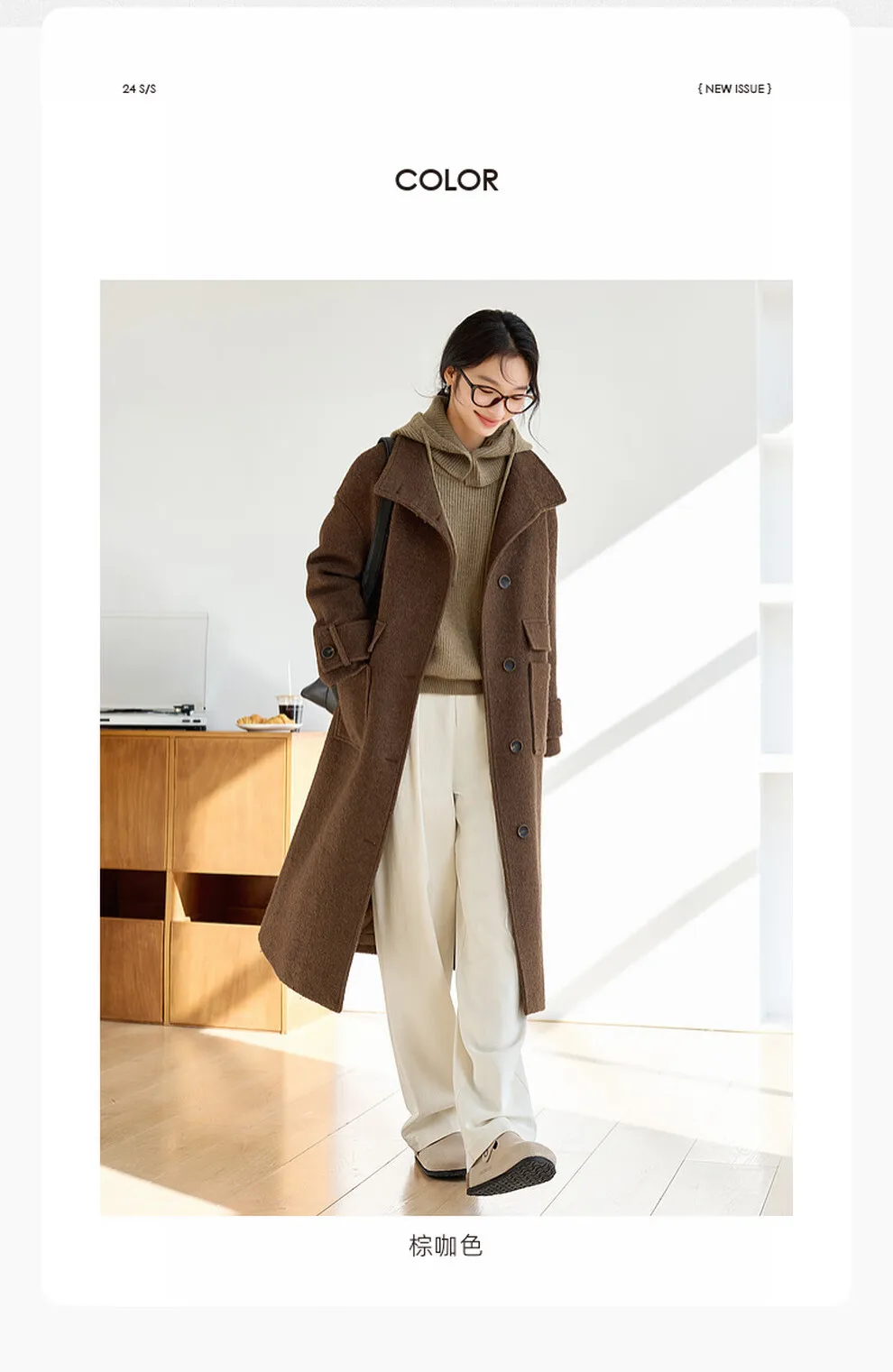 2024 AliExpress transfrontaliero autunno e inverno bella bellezza, nuovo vestito allentato moda retrò colletto alla coreana lungo