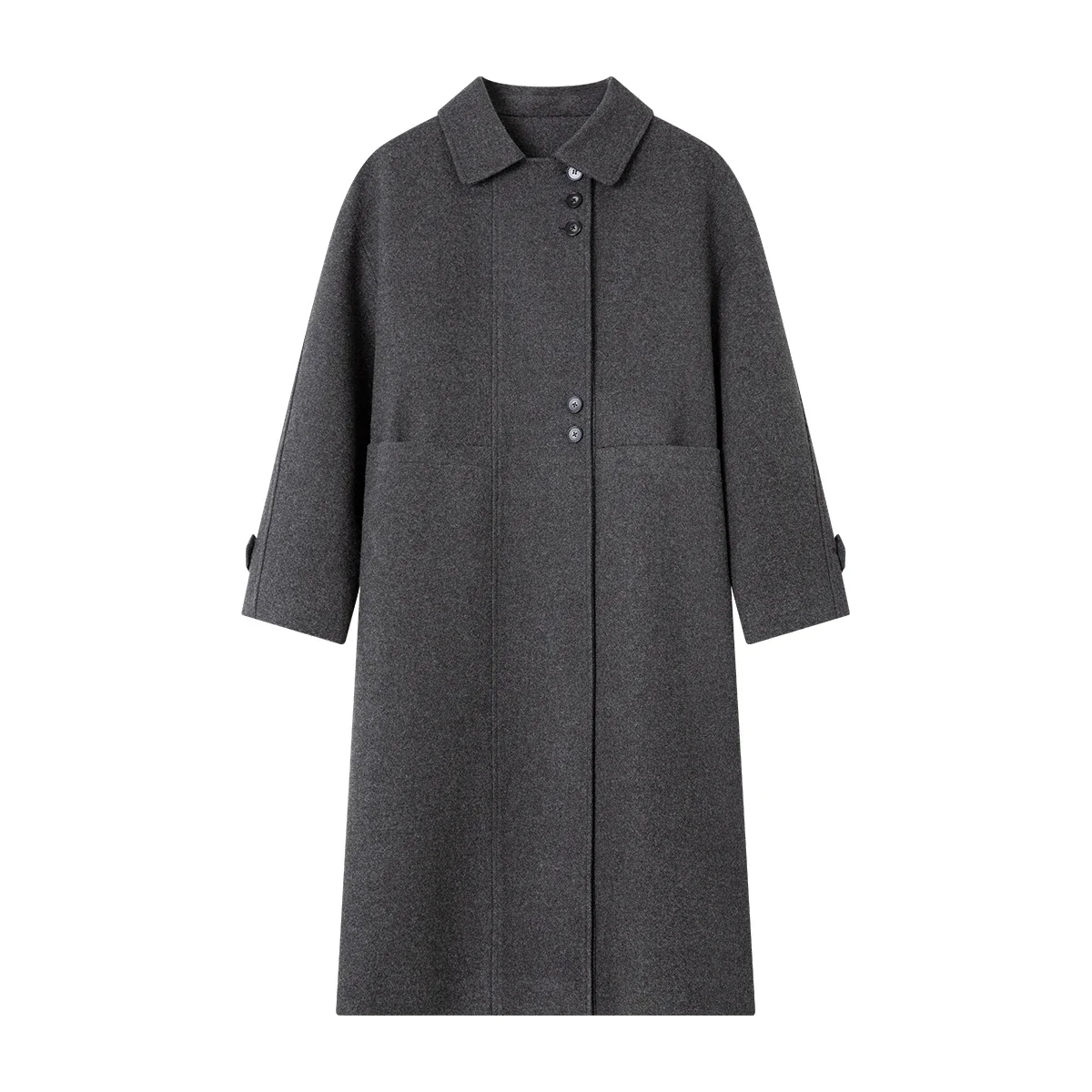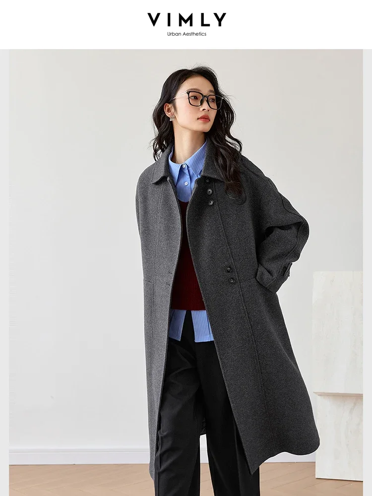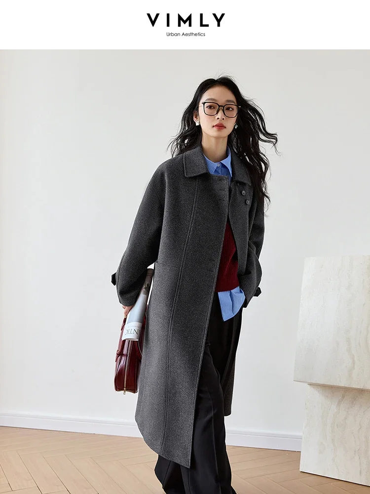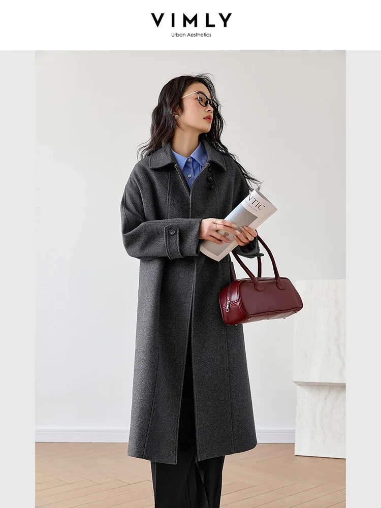 VIMLY Donna Streetwear Cappotto lungo di lana Inverno 2025 Office Lady Giacche con risvolto Elegante semplice soprabito Capispalla spesso M9951