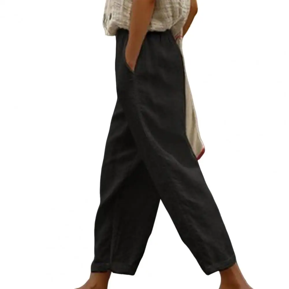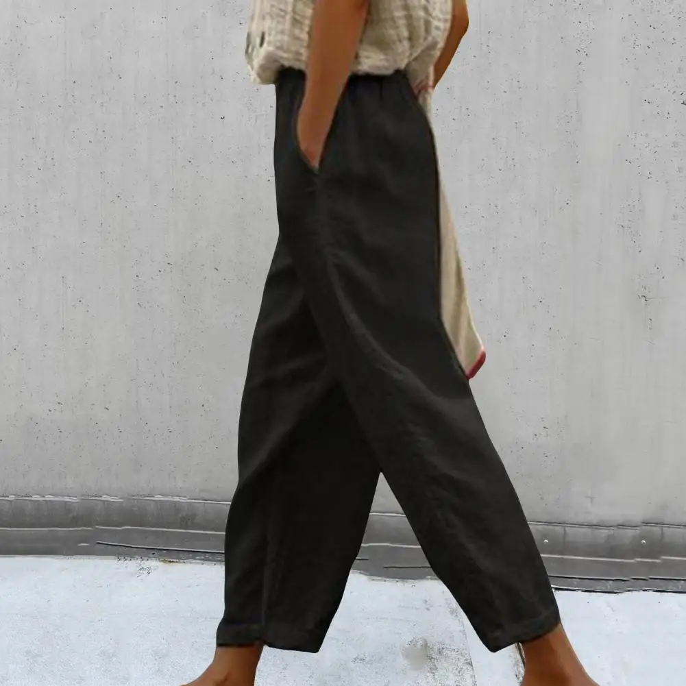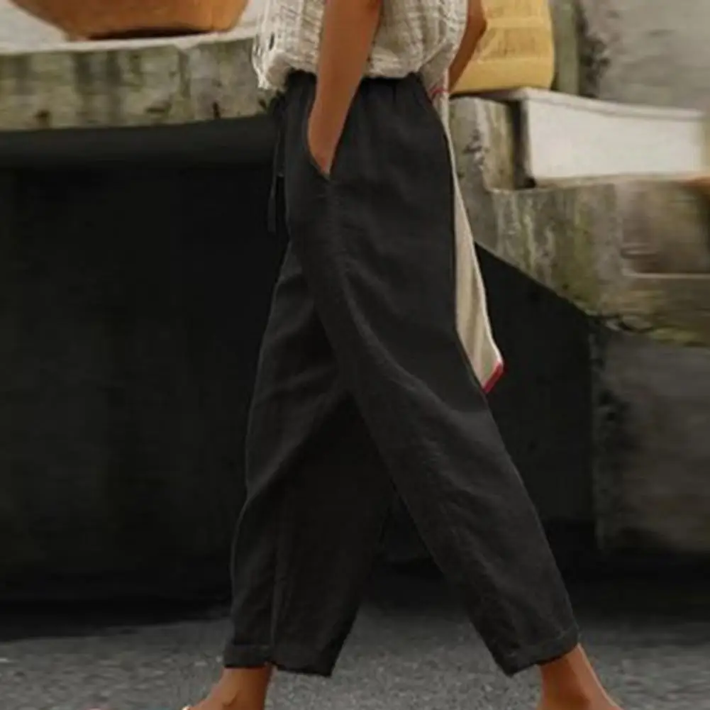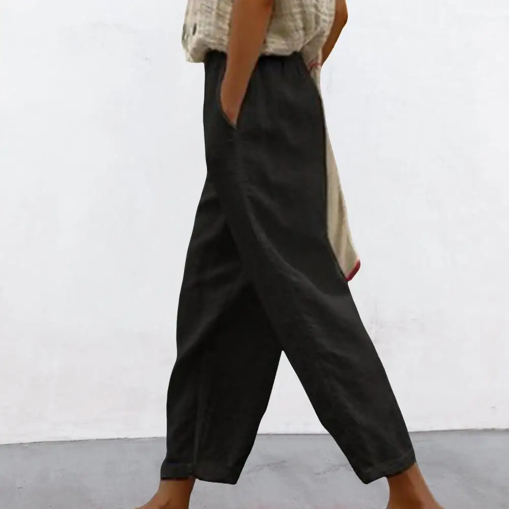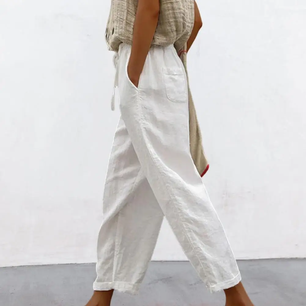 Realizzato in materiale di lino di cotone di alta qualità, i pantaloni casual da donna sono morbidi, traspiranti e confortevoli.