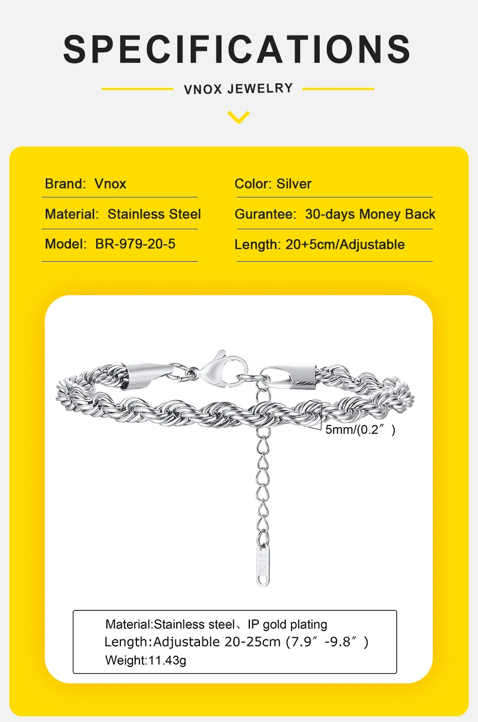 | Feature | Adjustable Twisted Rope Chain Bracelet |