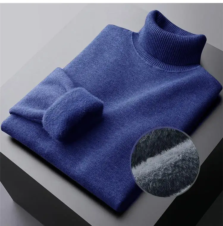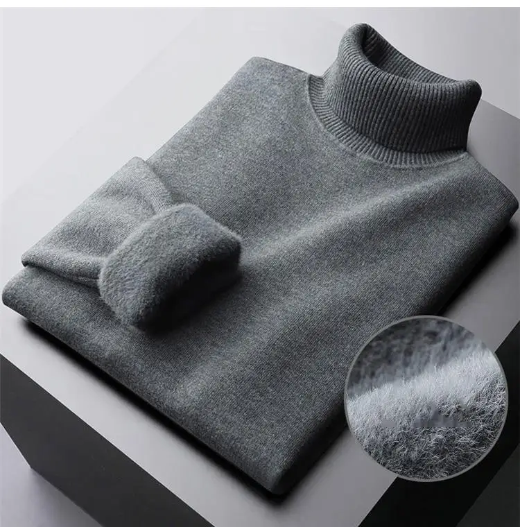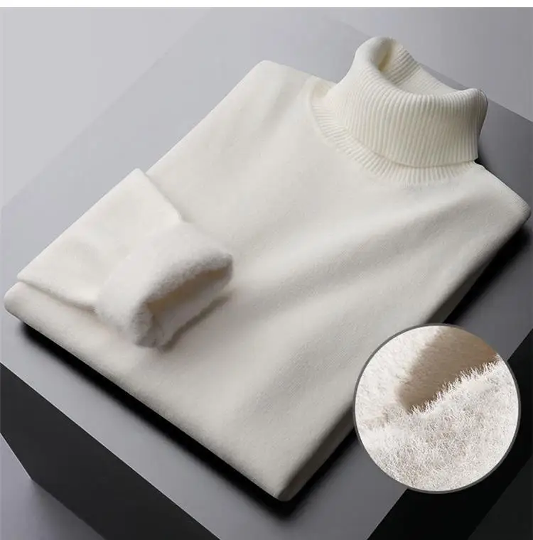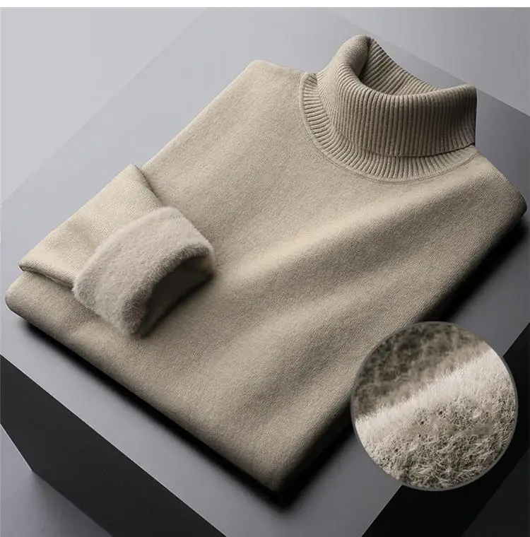 We.Fine Autunno Inverno Maglione a collo alto da uomo lavorato a maglia caldo velluto manica lunga pullover casual maglione base a prova di freddo per esterni