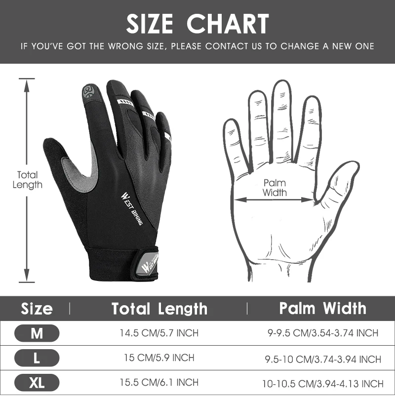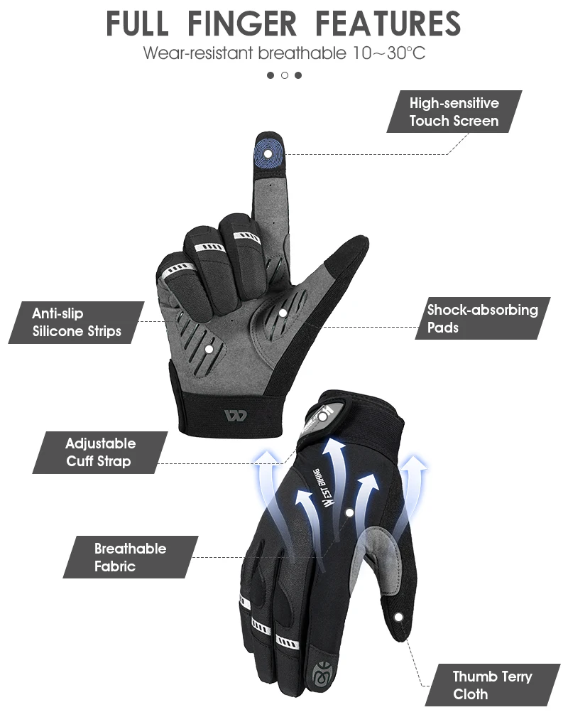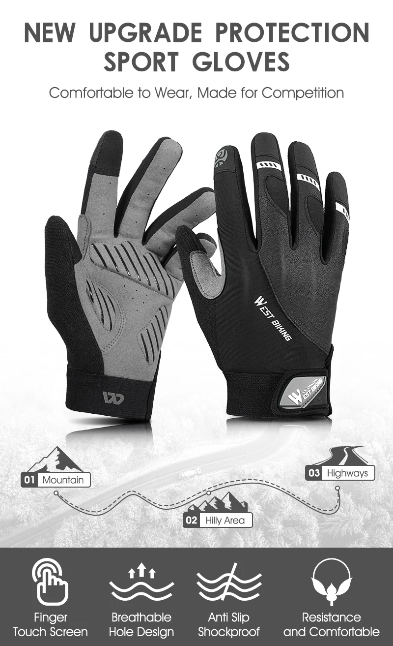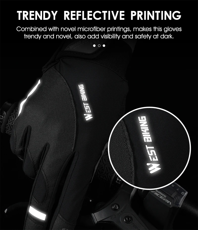 WEST BIKING Guanto di protezione sportiva Addensare Assorbimento degli urti Guanti da ciclismo Touch Screen Guanti caldi riflettenti Attrezzatura da ciclismo