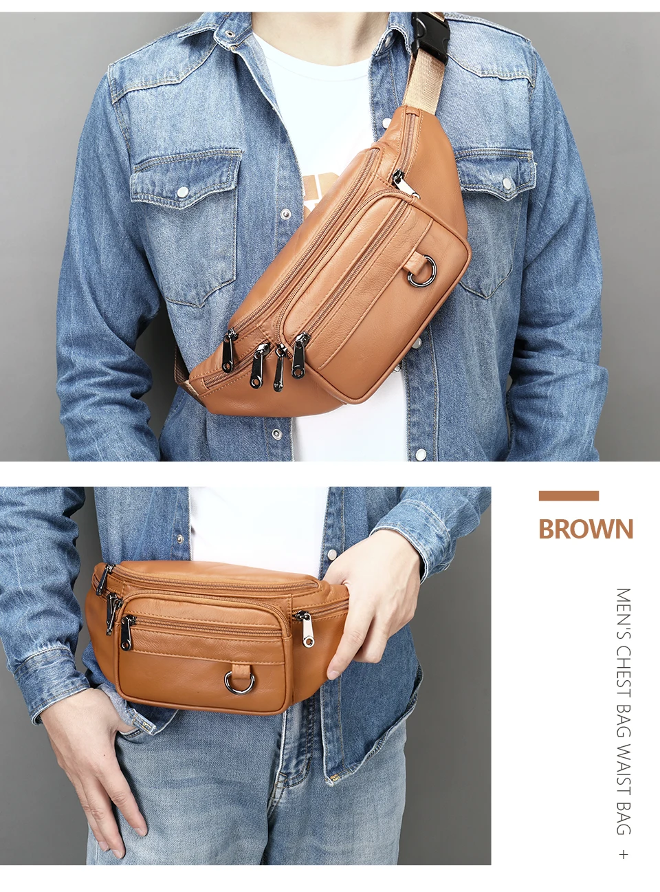 WESTAL Marsupio da uomo in vera pelle con multi-tasche per marsupio da cintura per telefono Marsupio da viaggio Marsupio da cintura Borse pettorale 9044