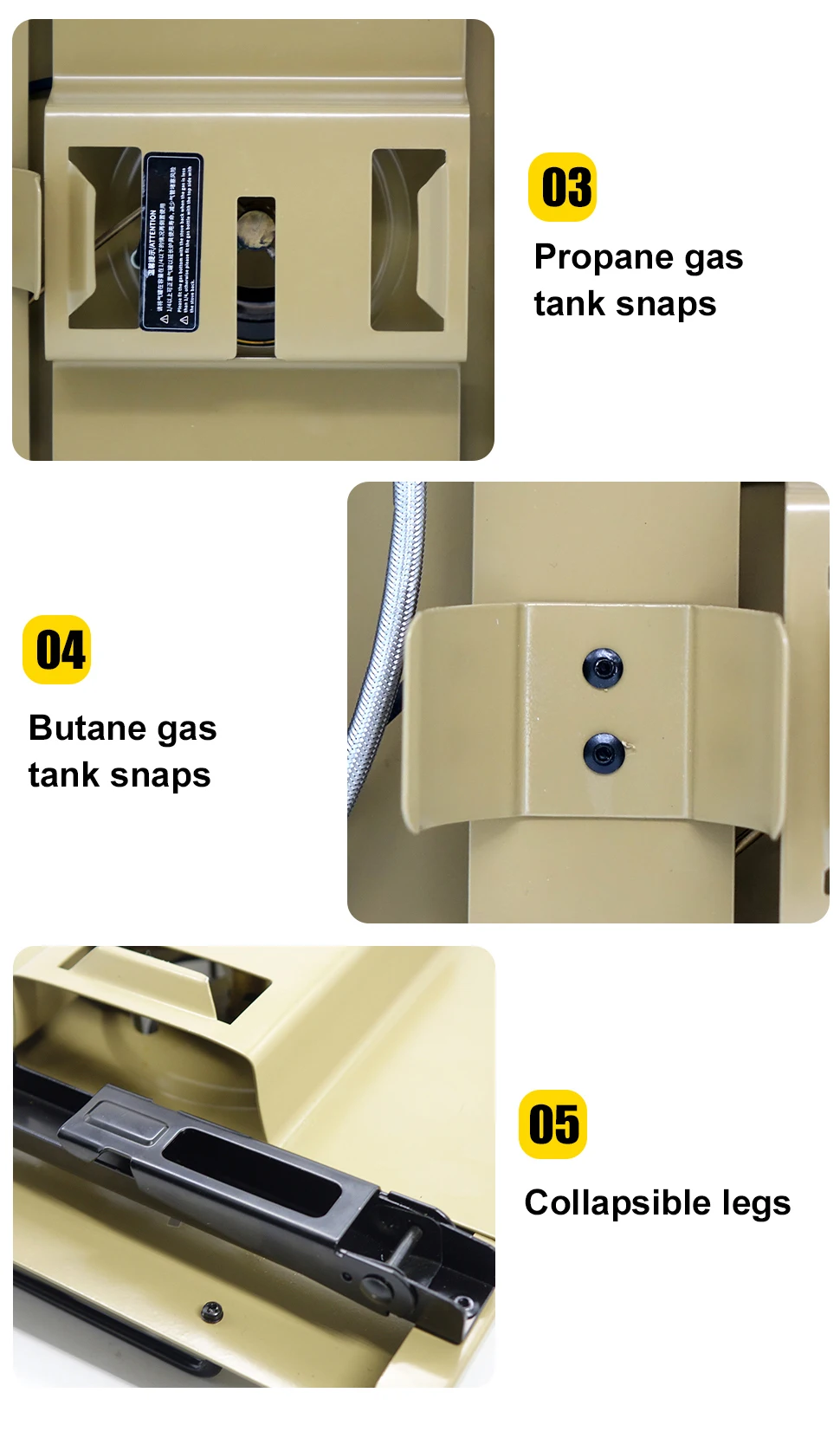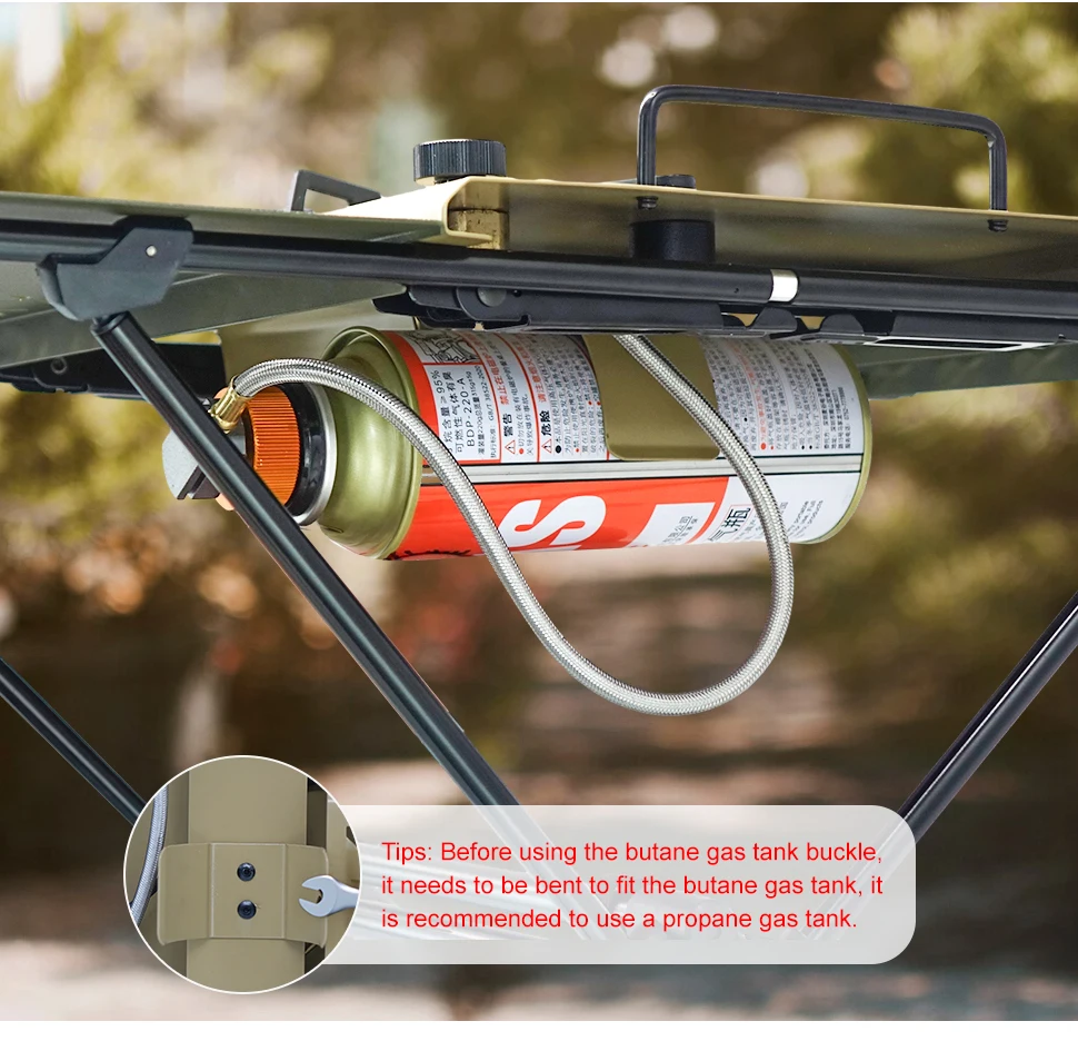 1.Prima di utilizzare il buck del serbatoio di gas butano, deve essere piegato per adattarsi al serbatoio di gas butano, è consigliato per utilizzare un serbatoio di gas propano;