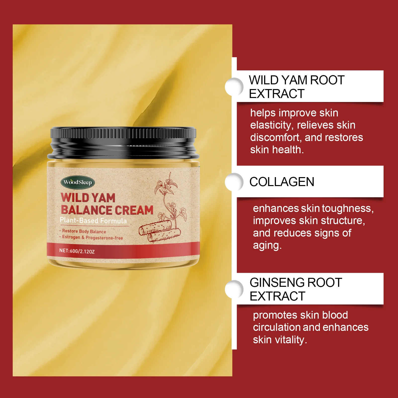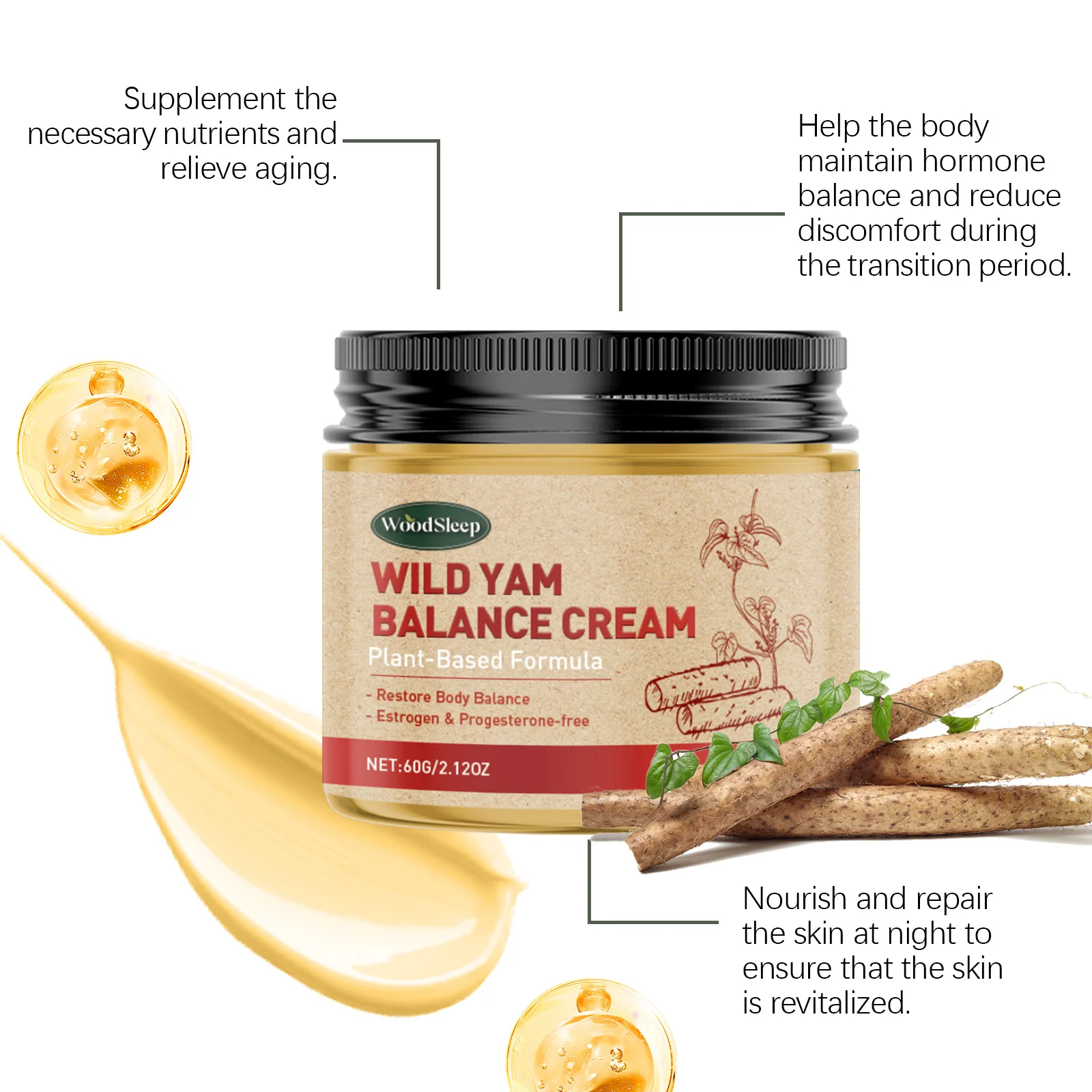 WoodSleep Wild Yam Crema Progesteron Ormone Regolazione Bilanciamento Rafforzamento Levigante Idratante Rughe Rimozione Balsamo Salute delle Donne 60g