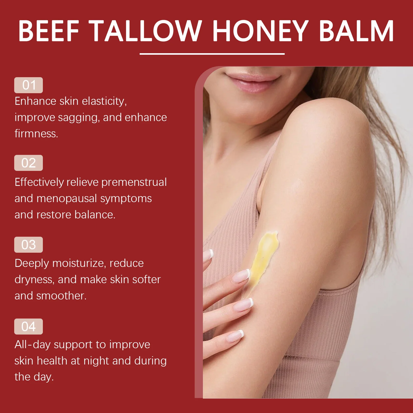 3.Idratare profondamente, ridurre la secchezza e rende la pelle più morbida e liscia.Supporto per tutto il giorno per migliorare la salute della pelle di notte e durante il giorno.