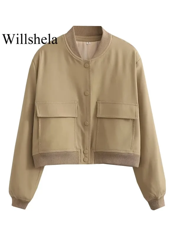 Willshela moda donna Solid Bomber giacche cappotto con tasche scollo a v monopetto maniche lunghe abiti da donna Chic