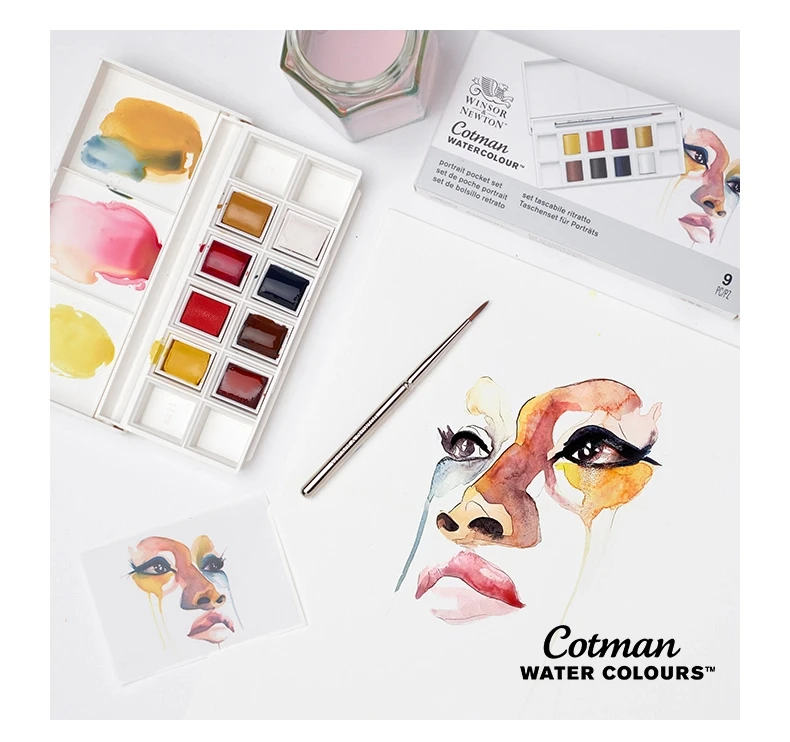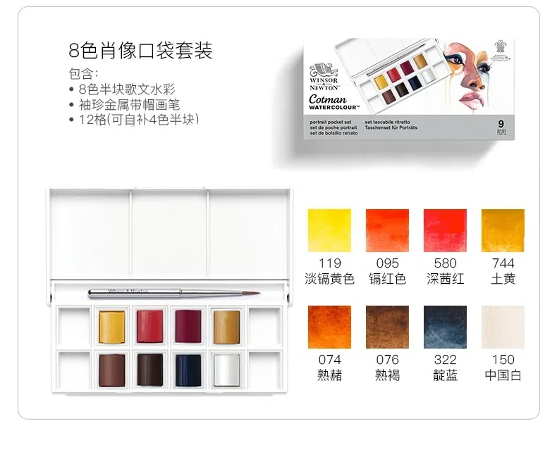 Dipingi il ritratto con 8 acquerelli Cotman accurati con attenzione da artisti professionisti.Realizzati con pigmenti di alta qualità in un set tascabile.Include una spazzola da viaggio e spazio per 4 più colori.
