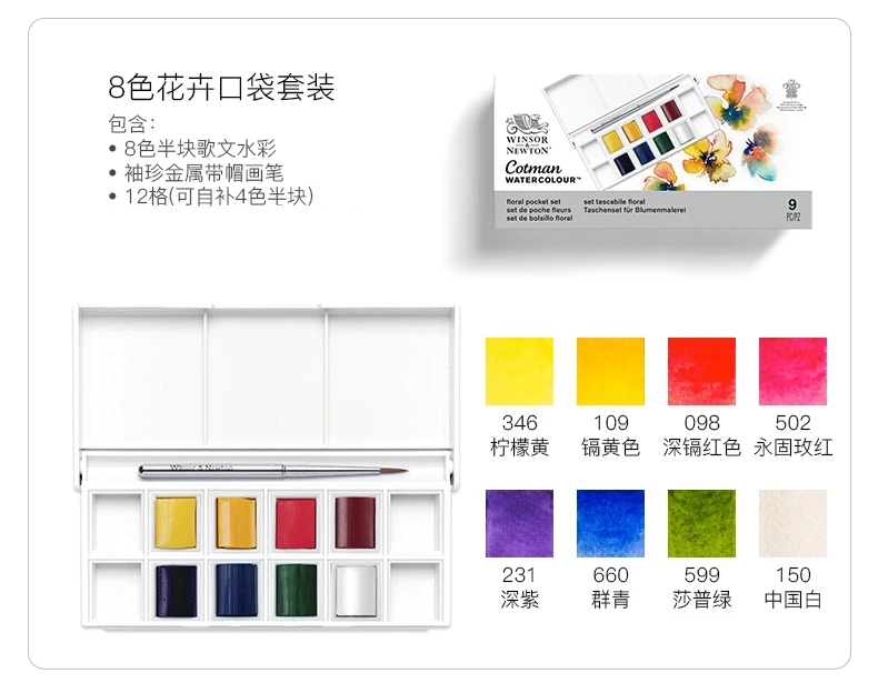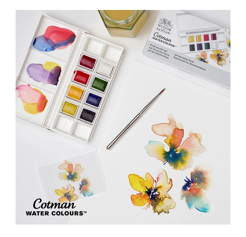 Dipingi opere floreali con 8 acquerelli Cotman con attenzione al curato da artisti professionisti.Realizzati con pigmenti di alta qualità in un set tascabile.Include una spazzola da viaggio e spazio per 4 più colori.