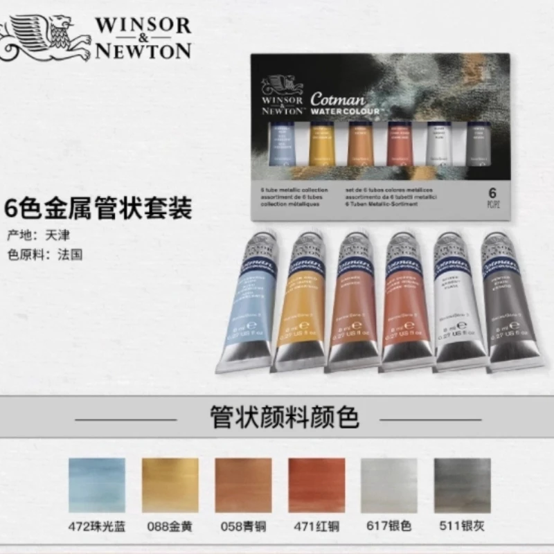 Set Contenuto: 6 x Tubi Cotman da 8 ml: Blu Iridescente, Oro Giallo, Bronzo, Rame Rosso, Argento, Peltro. I contenuti effettivi possono variare.