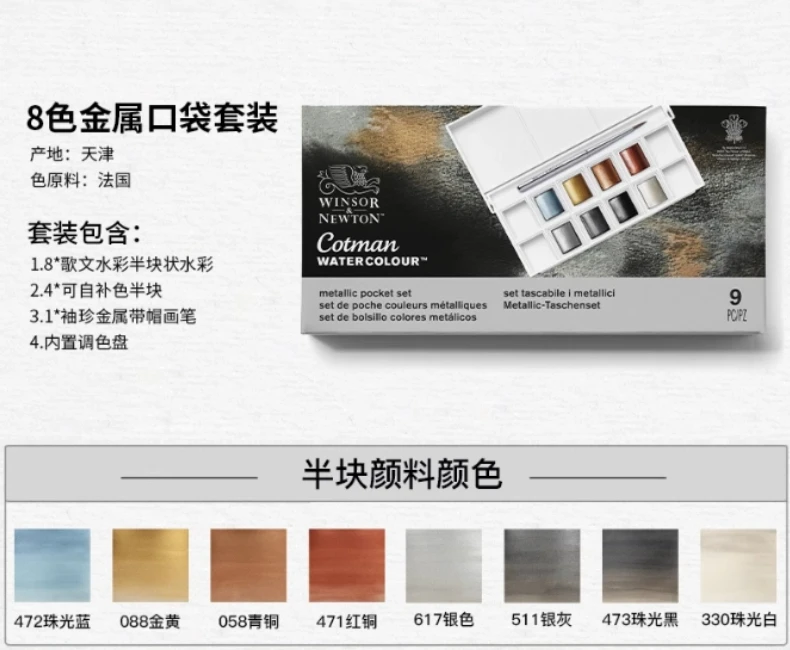 Scopri 8 acquerelli metallici Cotman realizzati con pigmenti di alta qualità in un set tascabile.Include una spazzola da viaggio e spazio per 4 più colori.