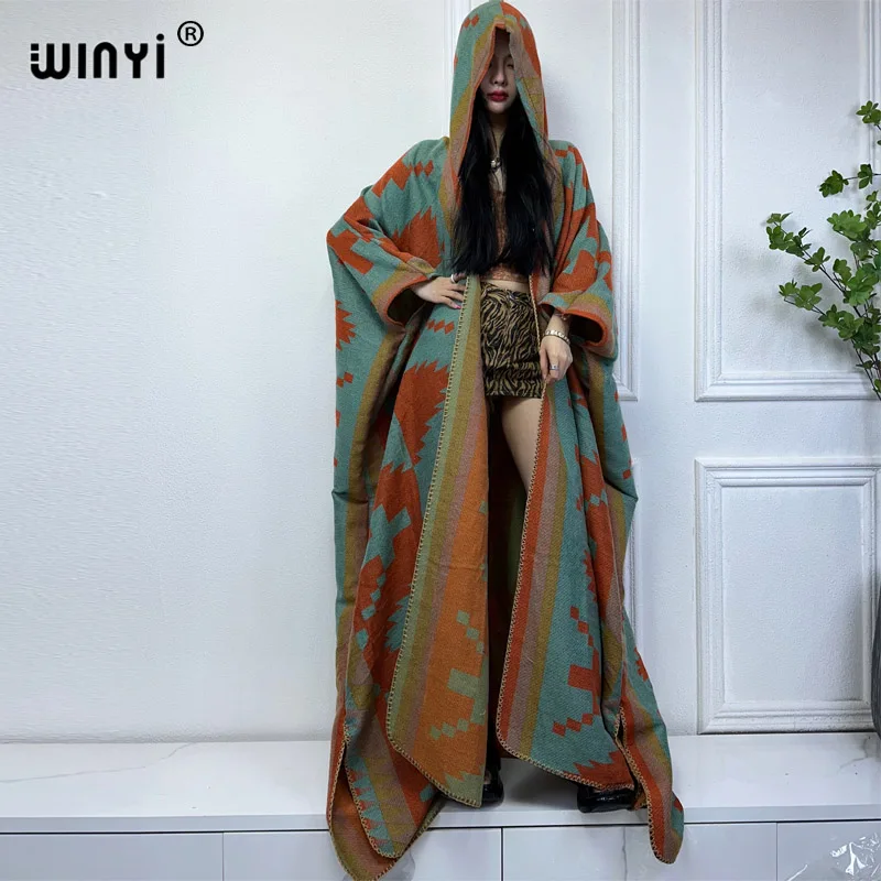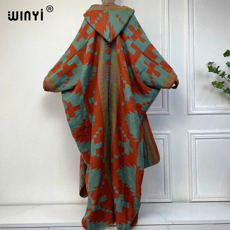 WINYI nuovi abiti cappotto invernale Abito da donna di alta qualità Allentato Spessore Caldo Abito poncho caftano femminile Cappotto con cappuccio moda Abaya