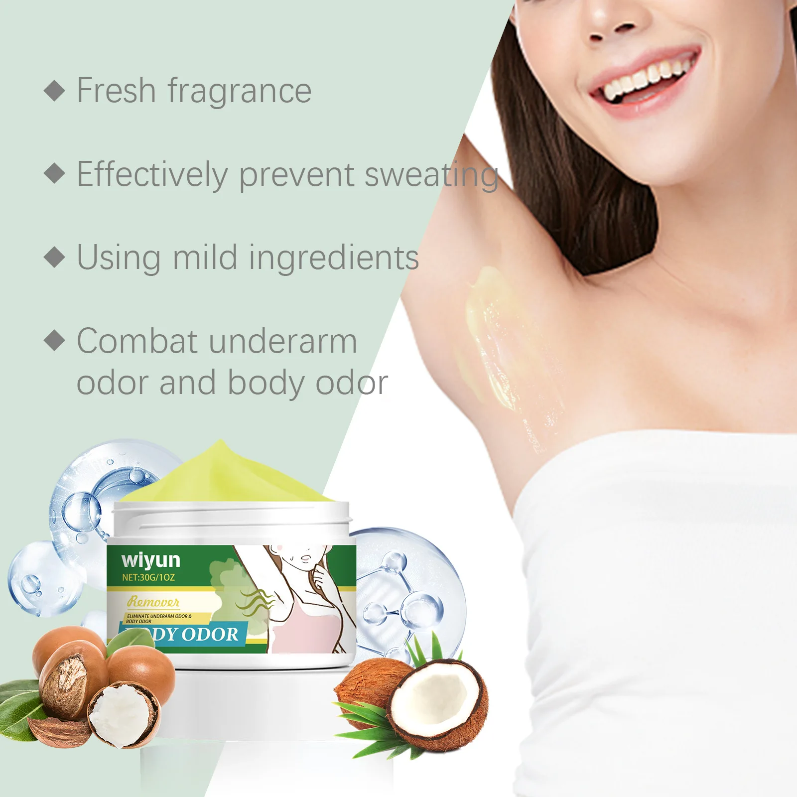 Wiyun Olio di Cocco Crema Deodorante Per Il Corpo Aroma Duraturo Ridurre L’odore Cattivo Aggiorna Ascelle Cura Della Pelle Ascelle Sudore Crema Per La Rimozione Dell’odore 30g