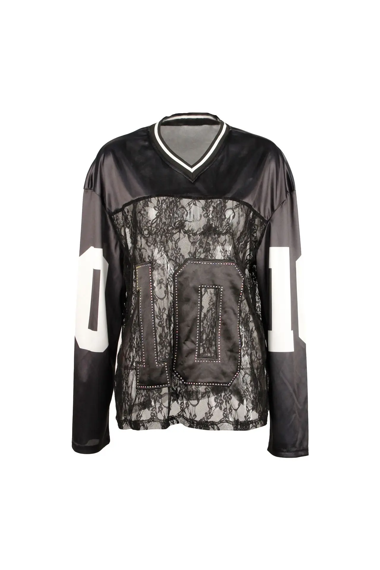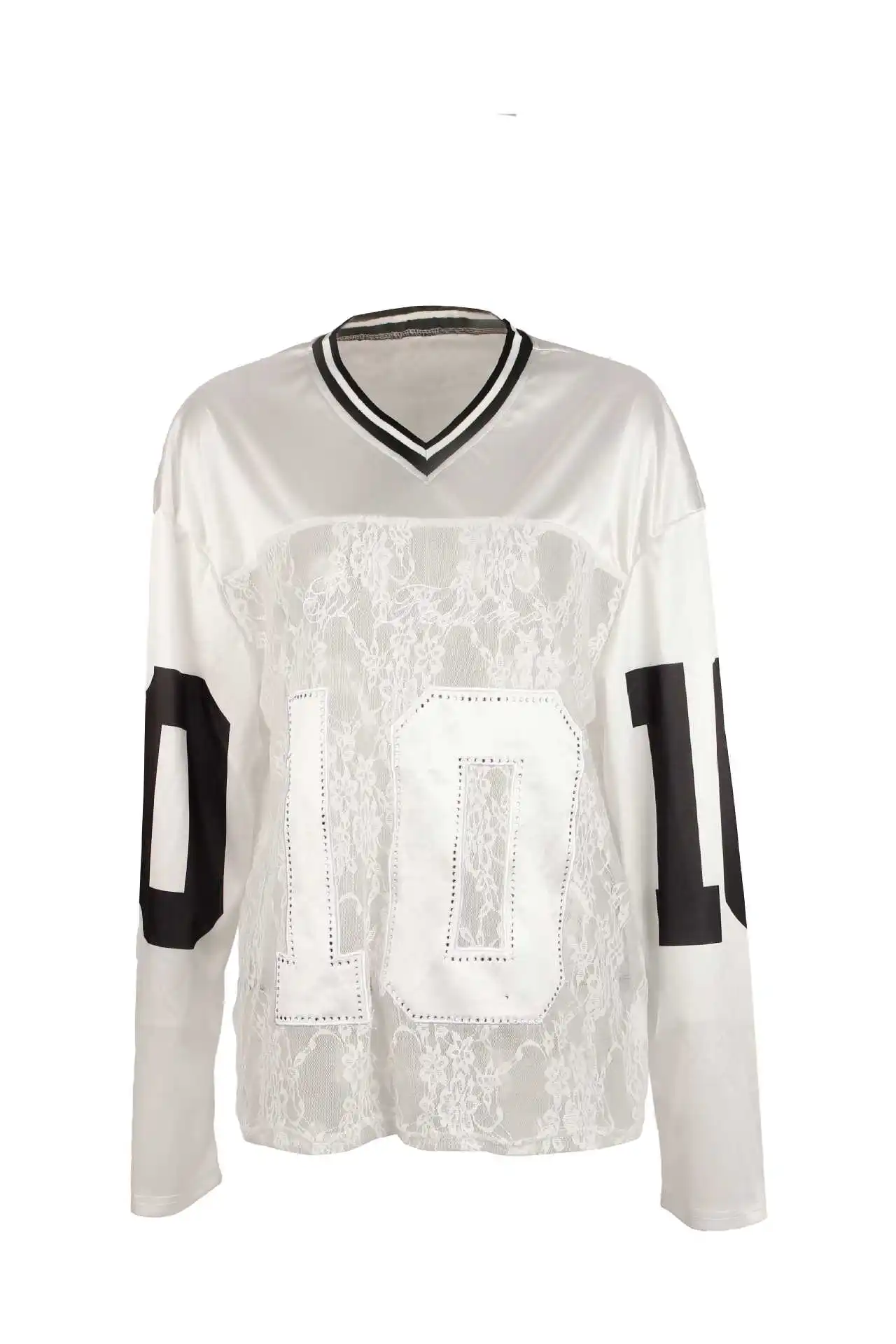 WLWXR Europa e America Sexy Lettera Stampa Pizzo Impiombato Trasparente Scollo a V T-shirt abiti da club per le donne 2025