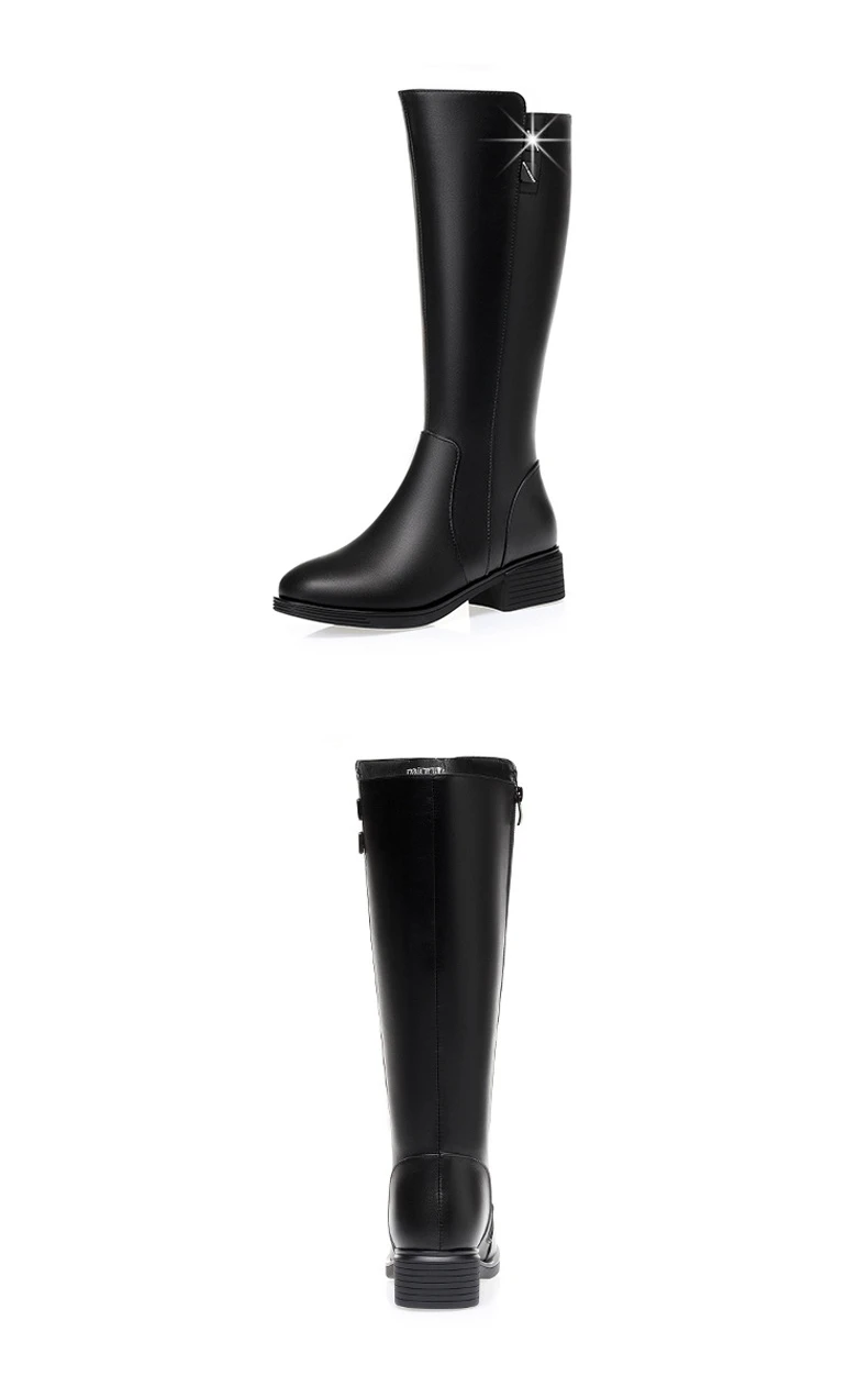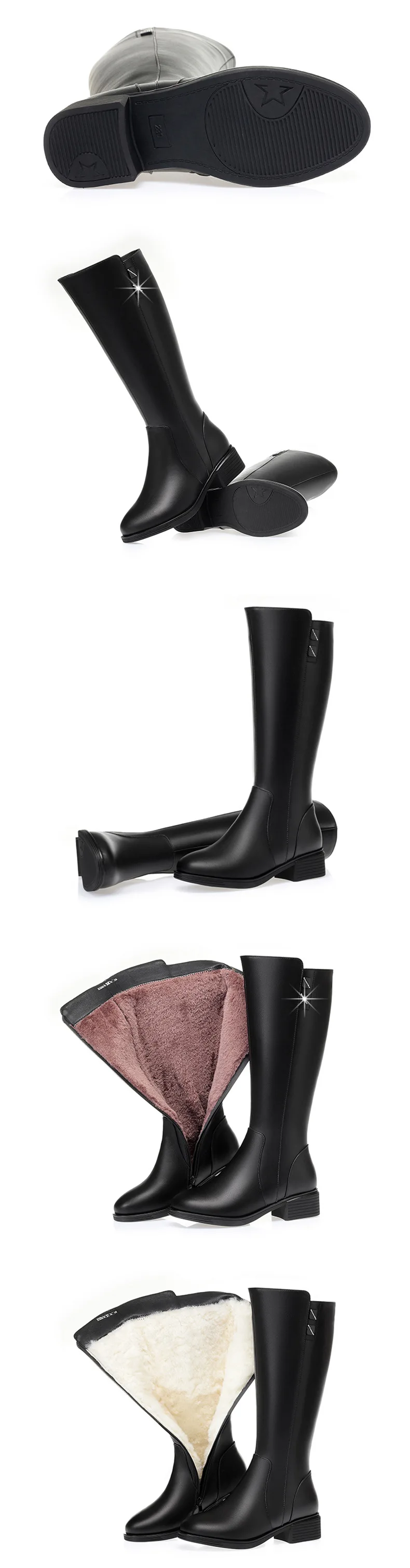 WOIZGIC Donna Madre Signore Donna Vera Pelle Neve Stivali a metà polpaccio Scarpe Inverno Caldo Lana Peluche Pelliccia Cerniera Plus Size 41 42