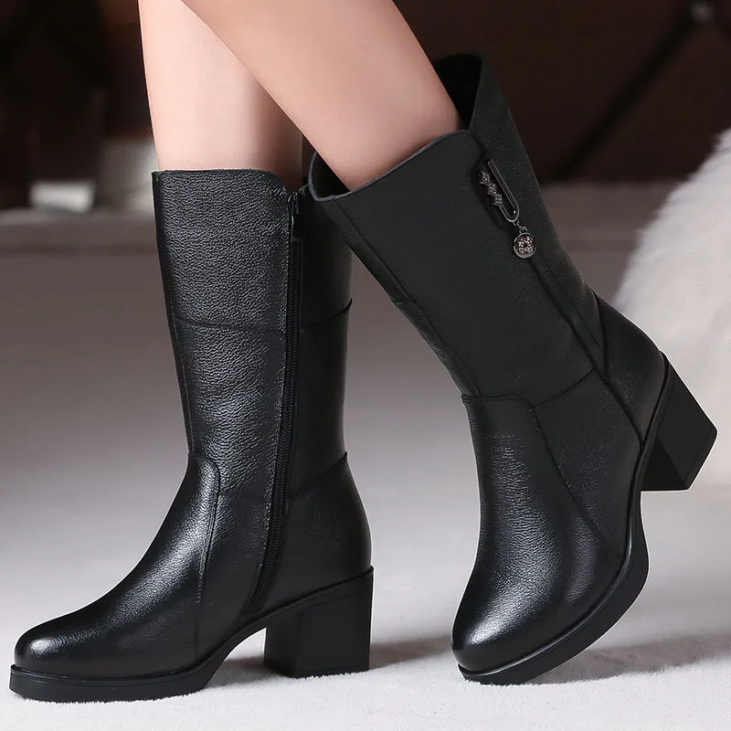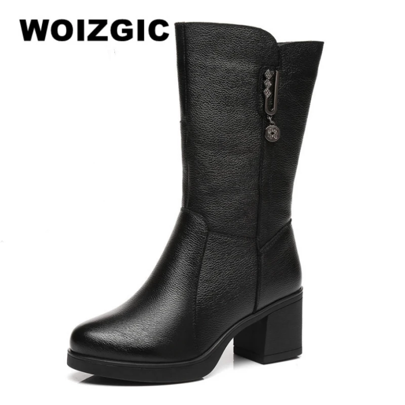 WOIZGIC stivali da donna a metà polpaccio in vera pelle femminile mather da donna in pelliccia invernale calda peluche