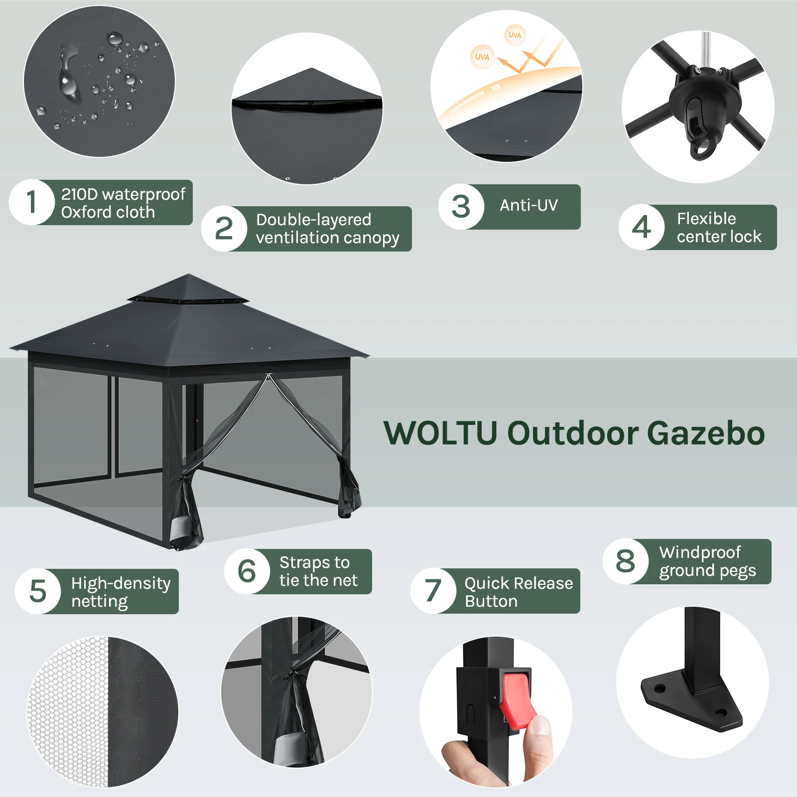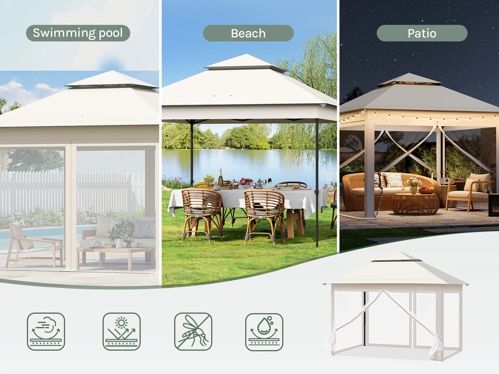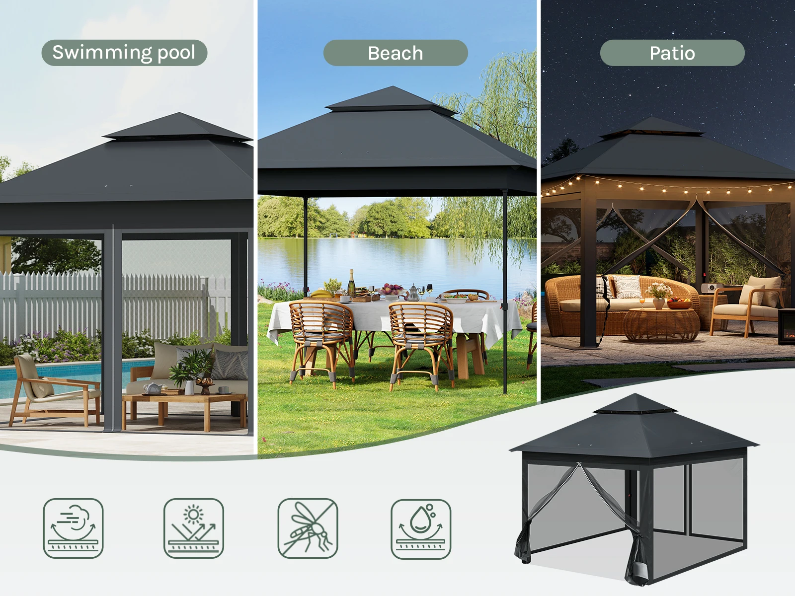 • UTENSIONE VERSATILE: La tenda da giardino a doppia parete offre uno spazio esterno shady per proteggere da vento e pioggia, e è il partner perfetto per il campeggio, feste, spettacoli commerciali, sport all’aria aperta e altre attività all’aperto.