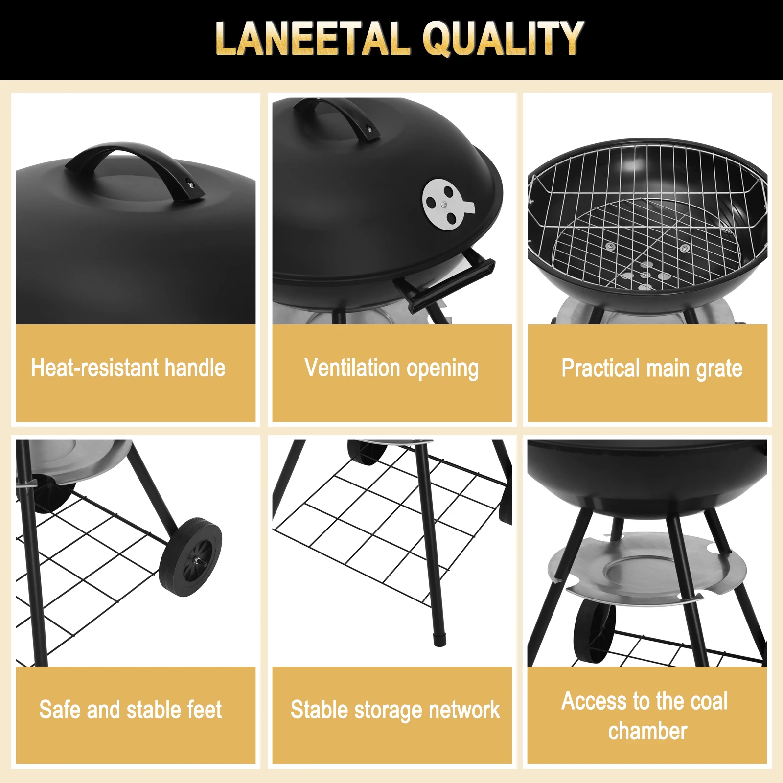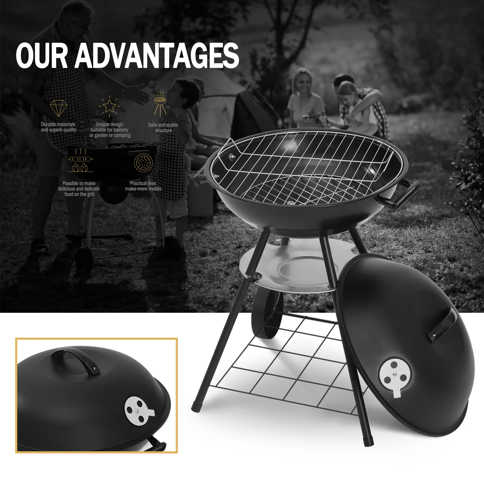 Thanks to the practical wheels, the charcoal grill is extremely mobile. With this movable charcoal grill you are well equipped for barbecue parties in the garden, on the beach, when travelling, camping or picnics.