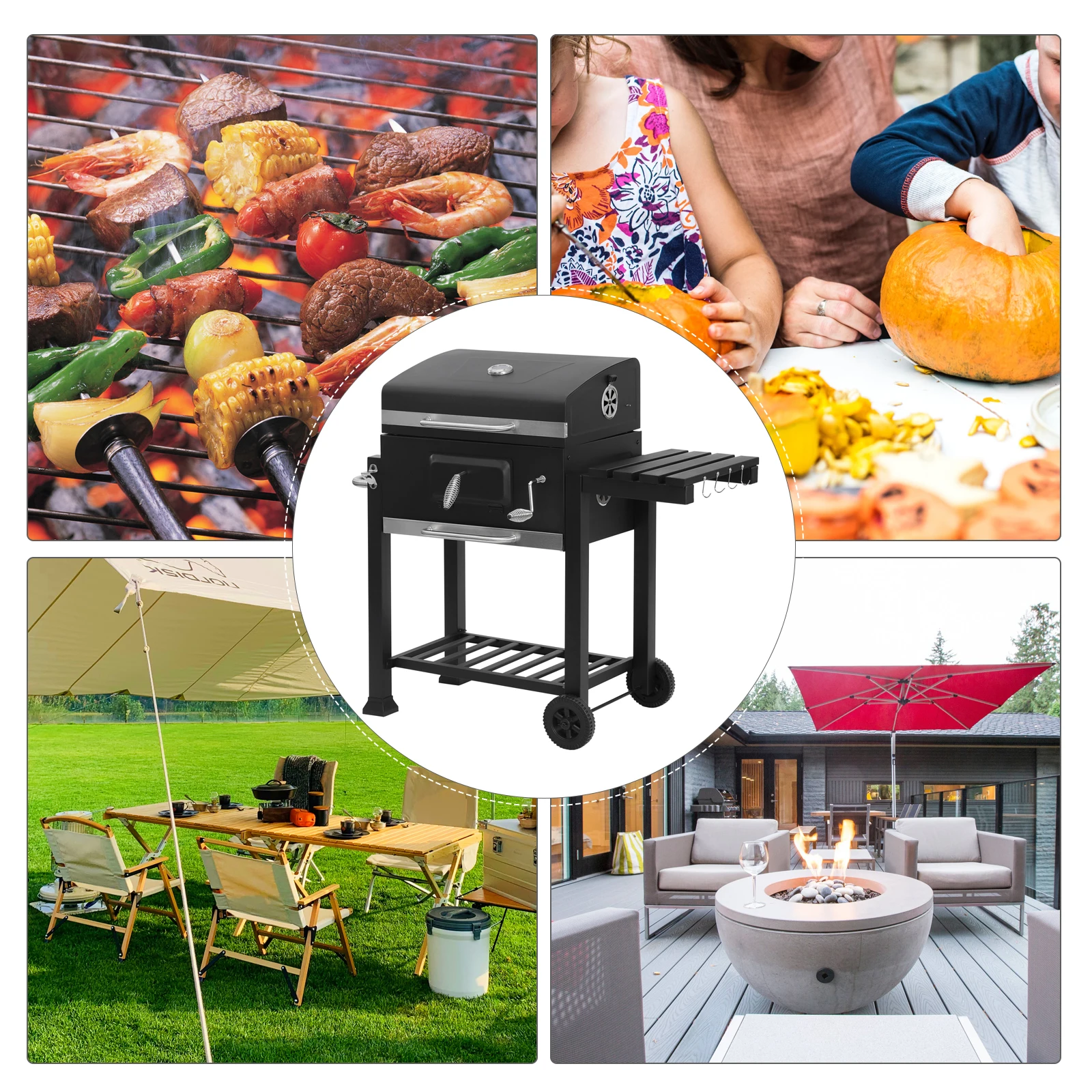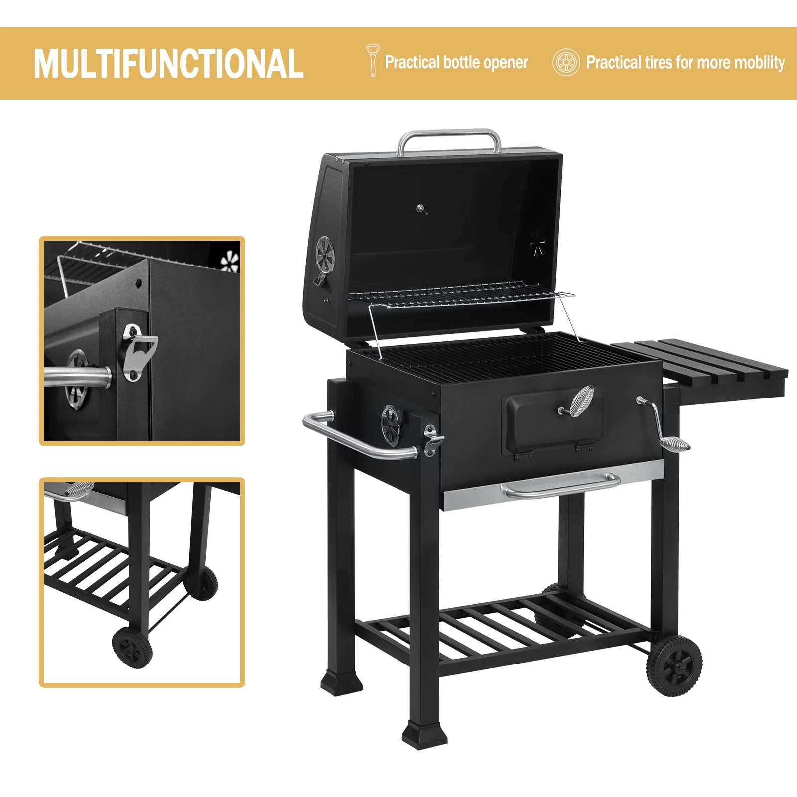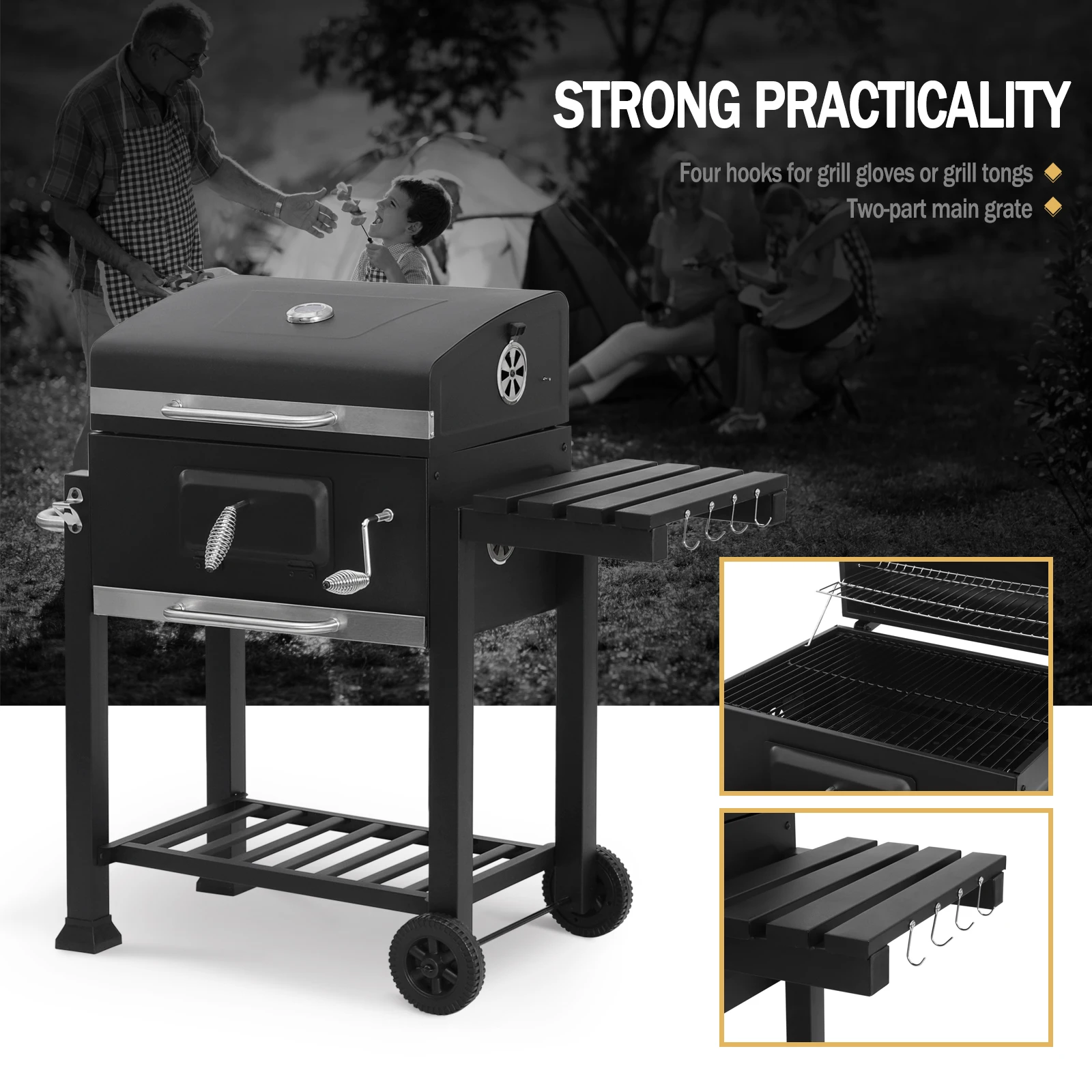 [Facile da spostare]-grazie alle pratiche ruote e alla maniglia laterale, la griglia a carbone è estremamente mobile, molto facile da spostare.