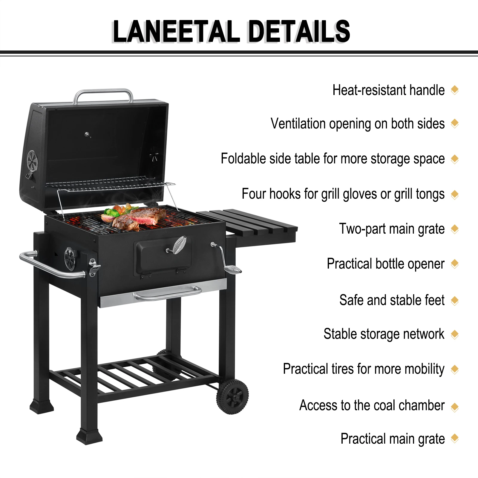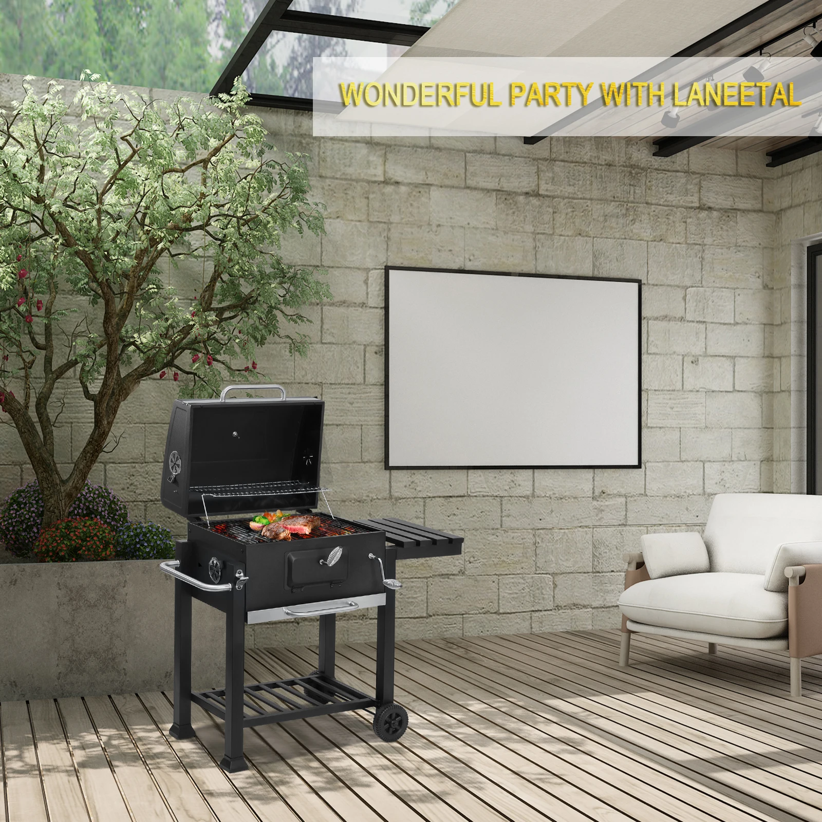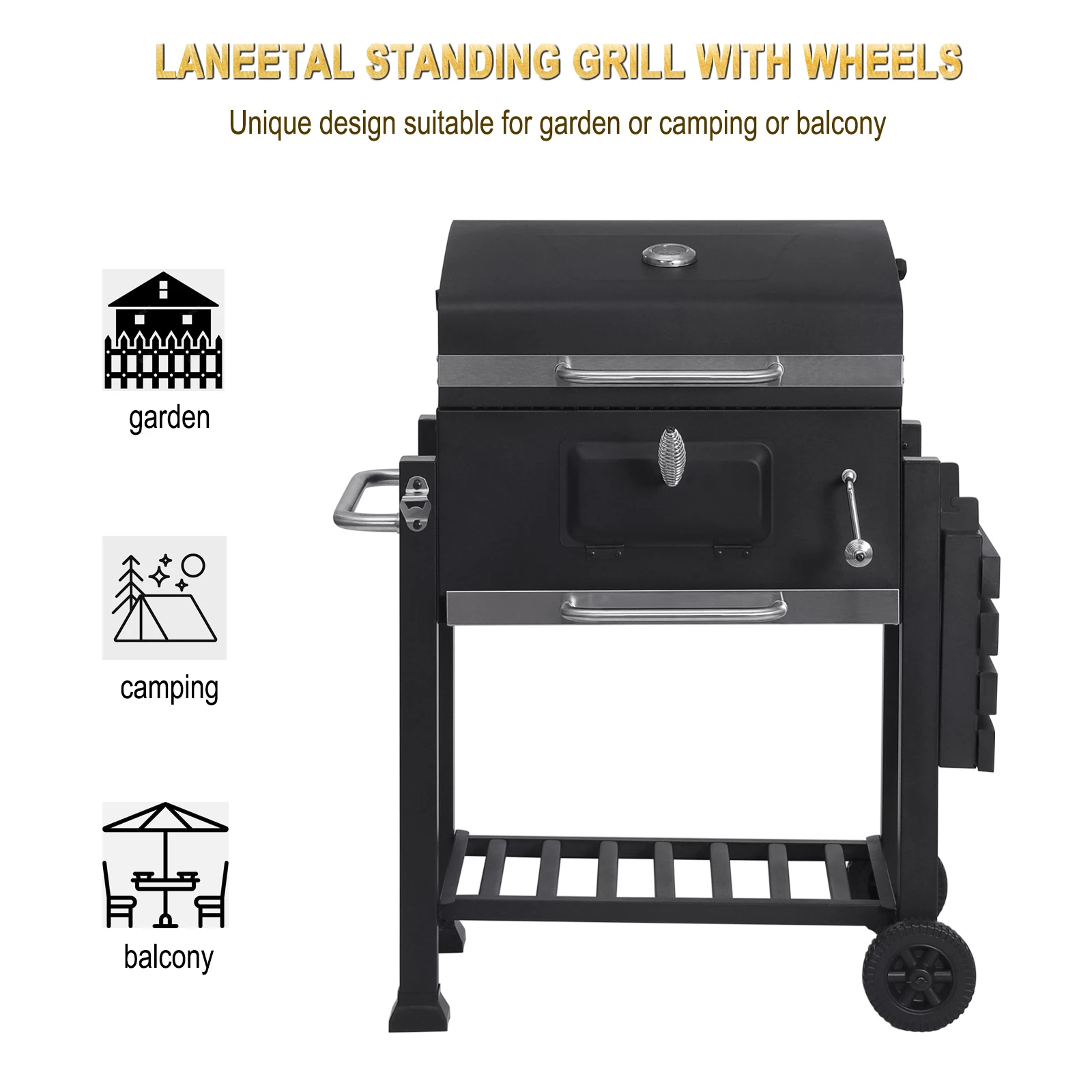 [Facile da spostare]-grazie alle pratiche ruote e alla maniglia laterale, la griglia a carbone è estremamente mobile, molto facile da spostare.