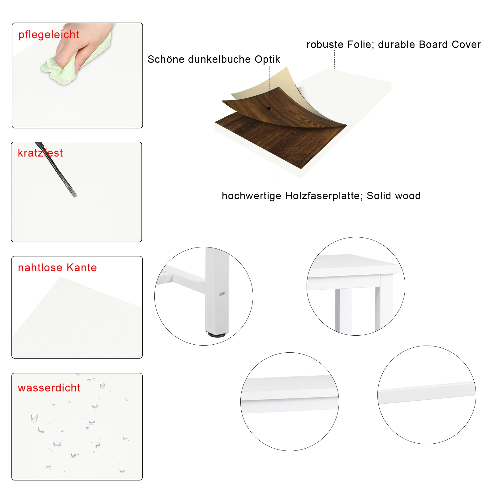 Alta durata:❤Il piano del tavolo è realizzato in truciolare (classe E1) con un rivestimento in resina melaminica, idrorepellente, resistente ai graffi e facile da pulire e mantenere. Per la pulizia, è sufficiente un panno umido.
