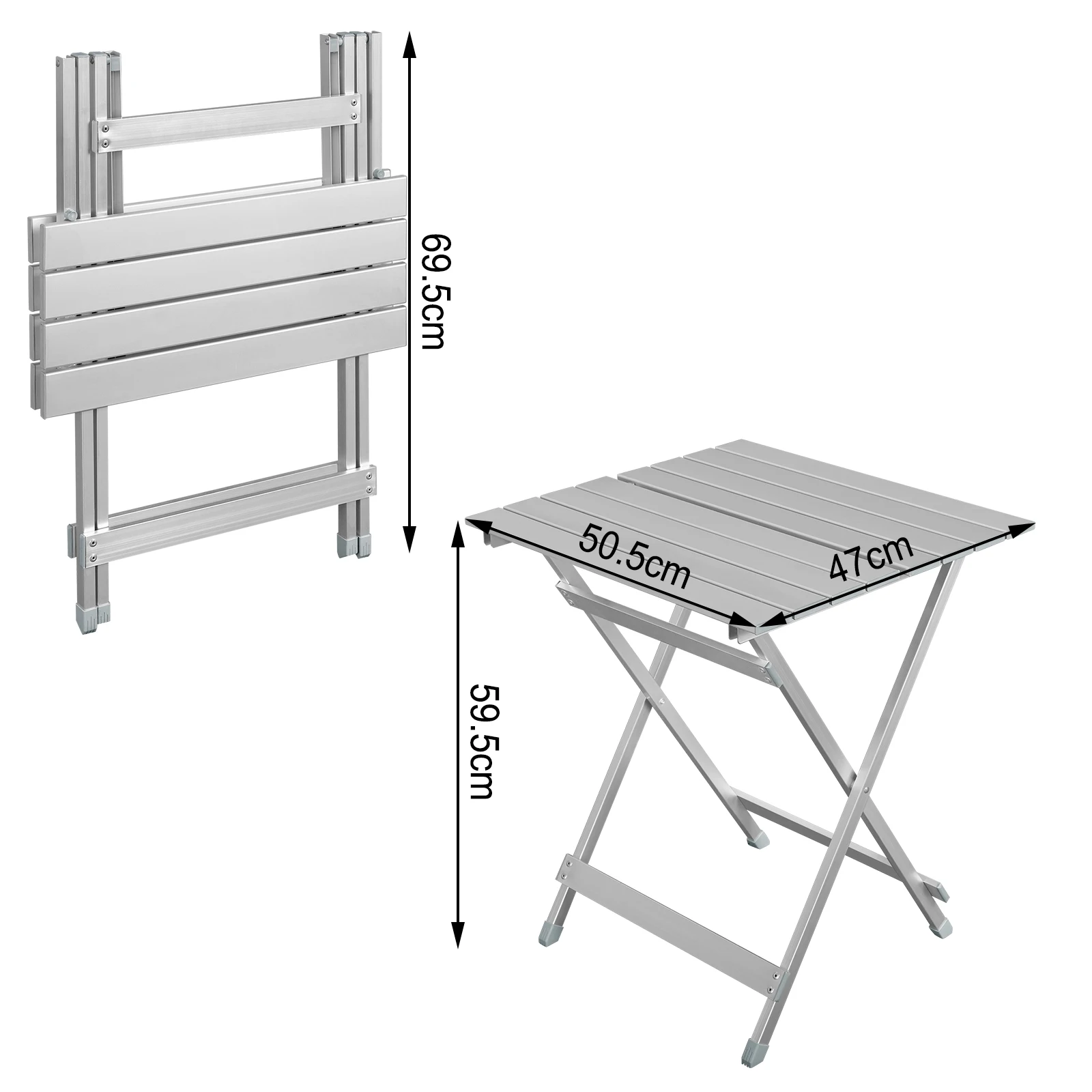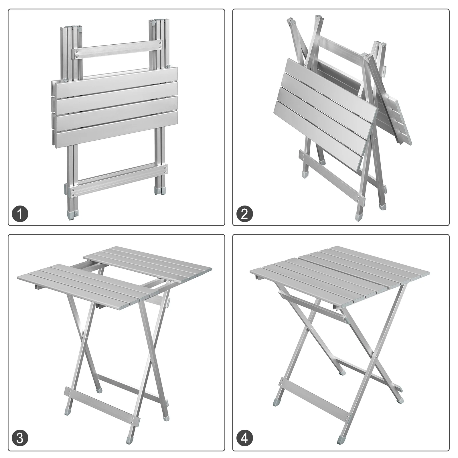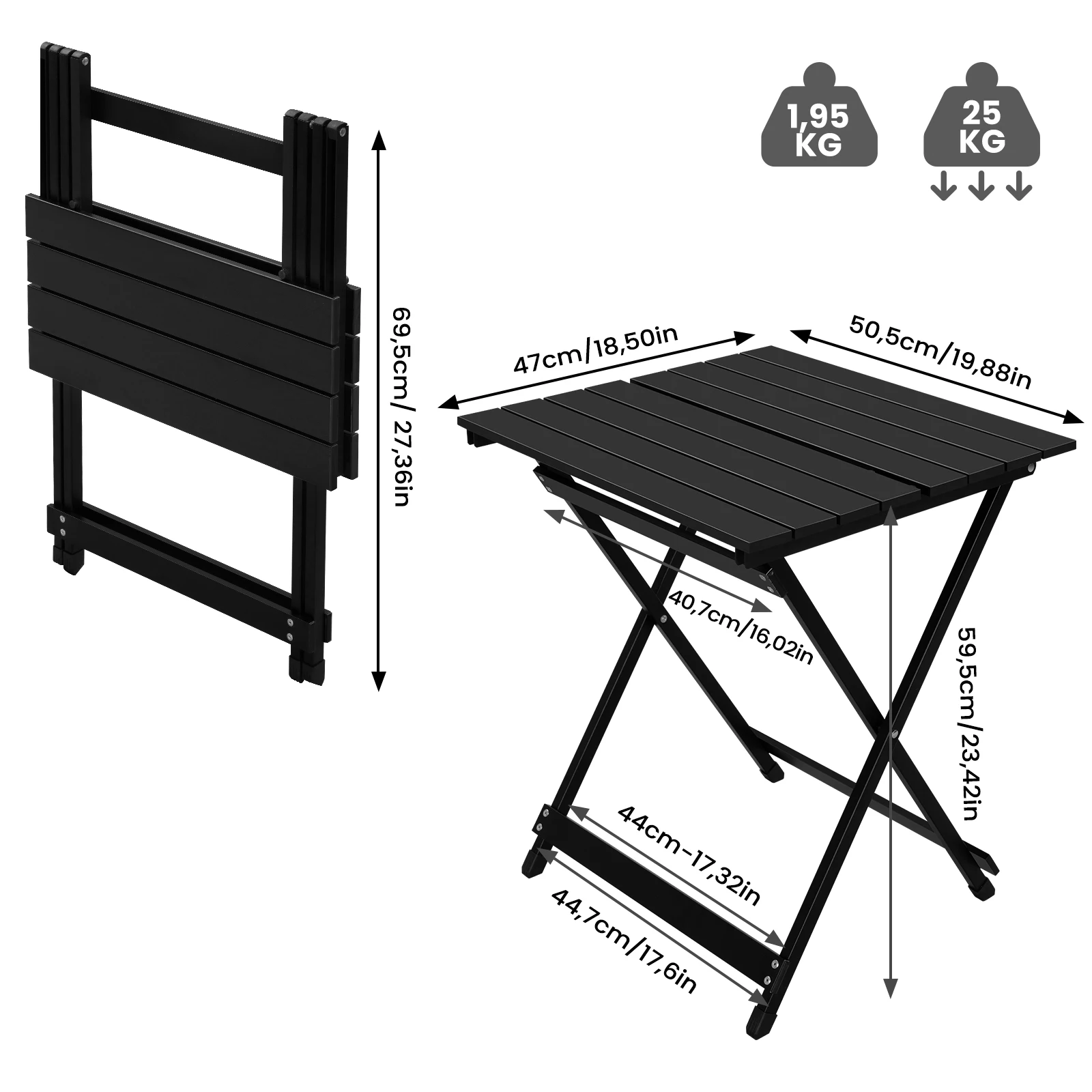 Buon materiale durevole: realizzato in lega di alluminio di alta qualità, questo tavolo pieghevole è resistente alla corrosione e ai graffi dalla tavola in legno.Inoltre, è molto più leggero e più durevole.Le sue dimensioni compatte di 50,5x47x59,5 cm (LxLxH) sono adatte per l’uso più normali.