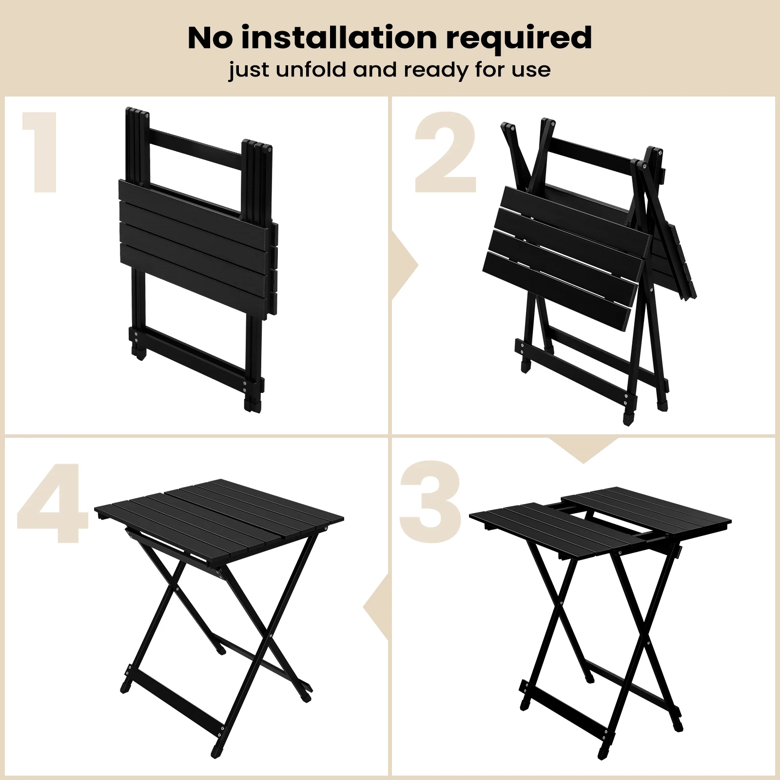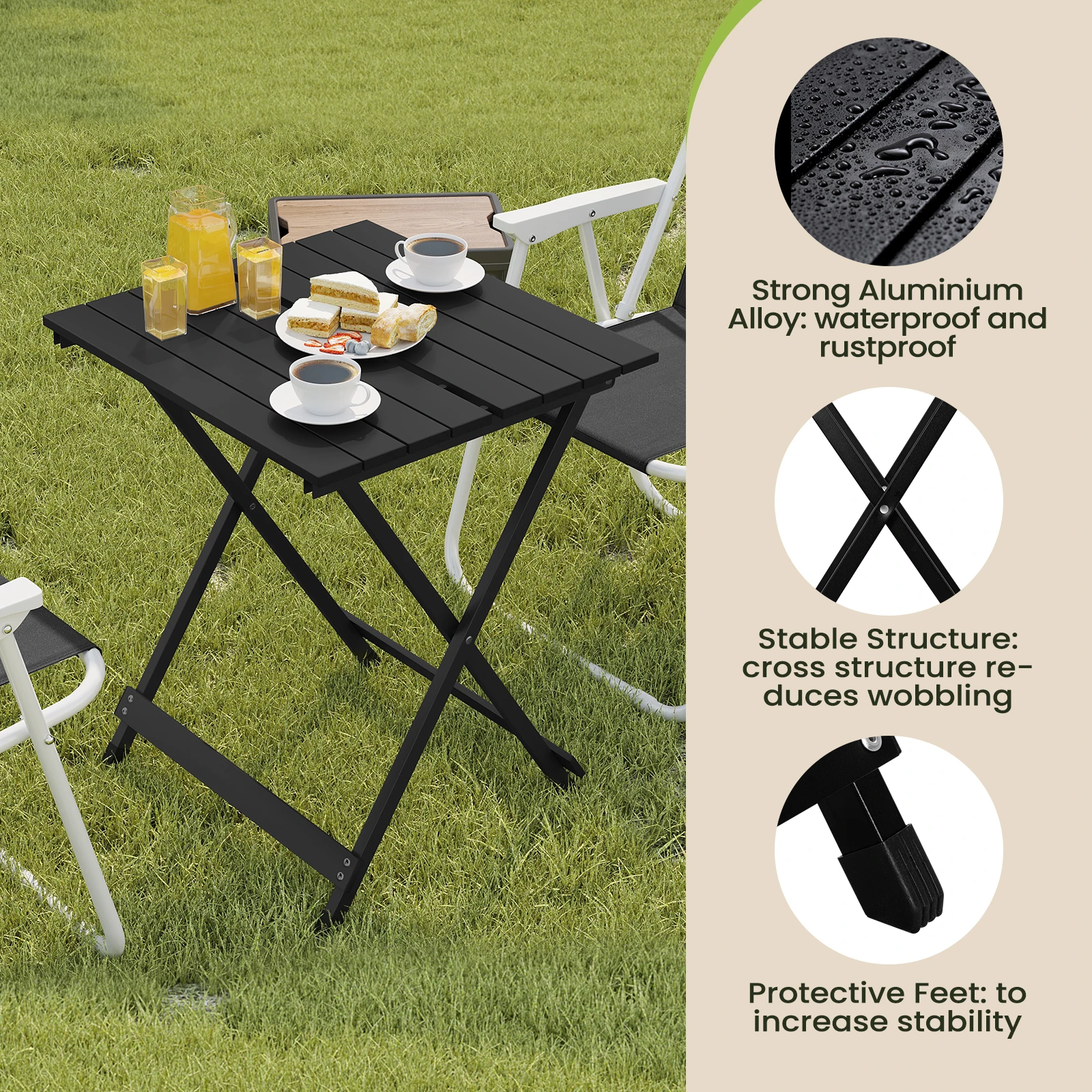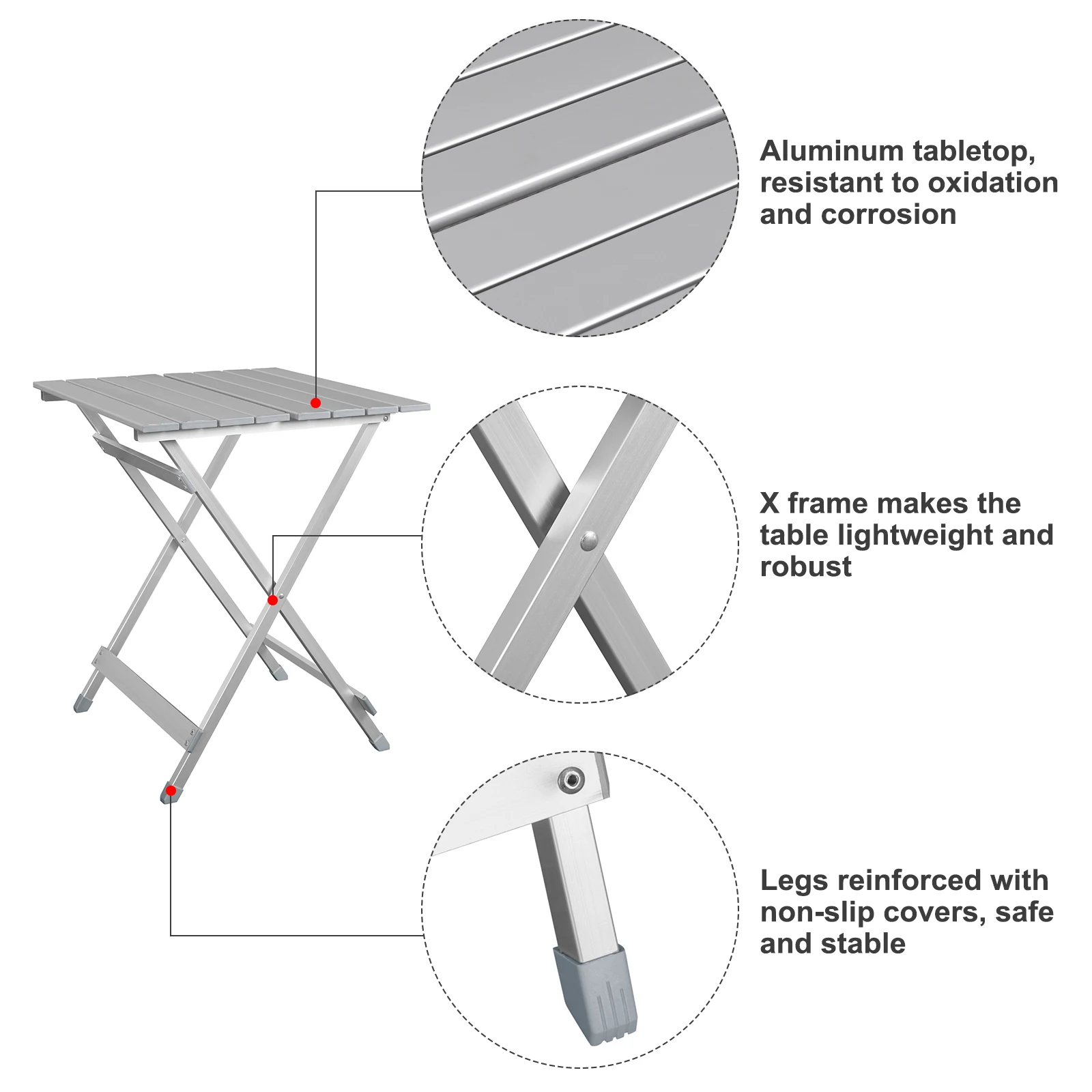 Buon materiale durevole: realizzato in lega di alluminio di alta qualità, questo tavolo pieghevole è resistente alla corrosione e ai graffi dalla tavola in legno.Inoltre, è molto più leggero e più durevole.Le sue dimensioni compatte di 50,5x47x59,5 cm (LxLxH) sono adatte per l’uso più normali.