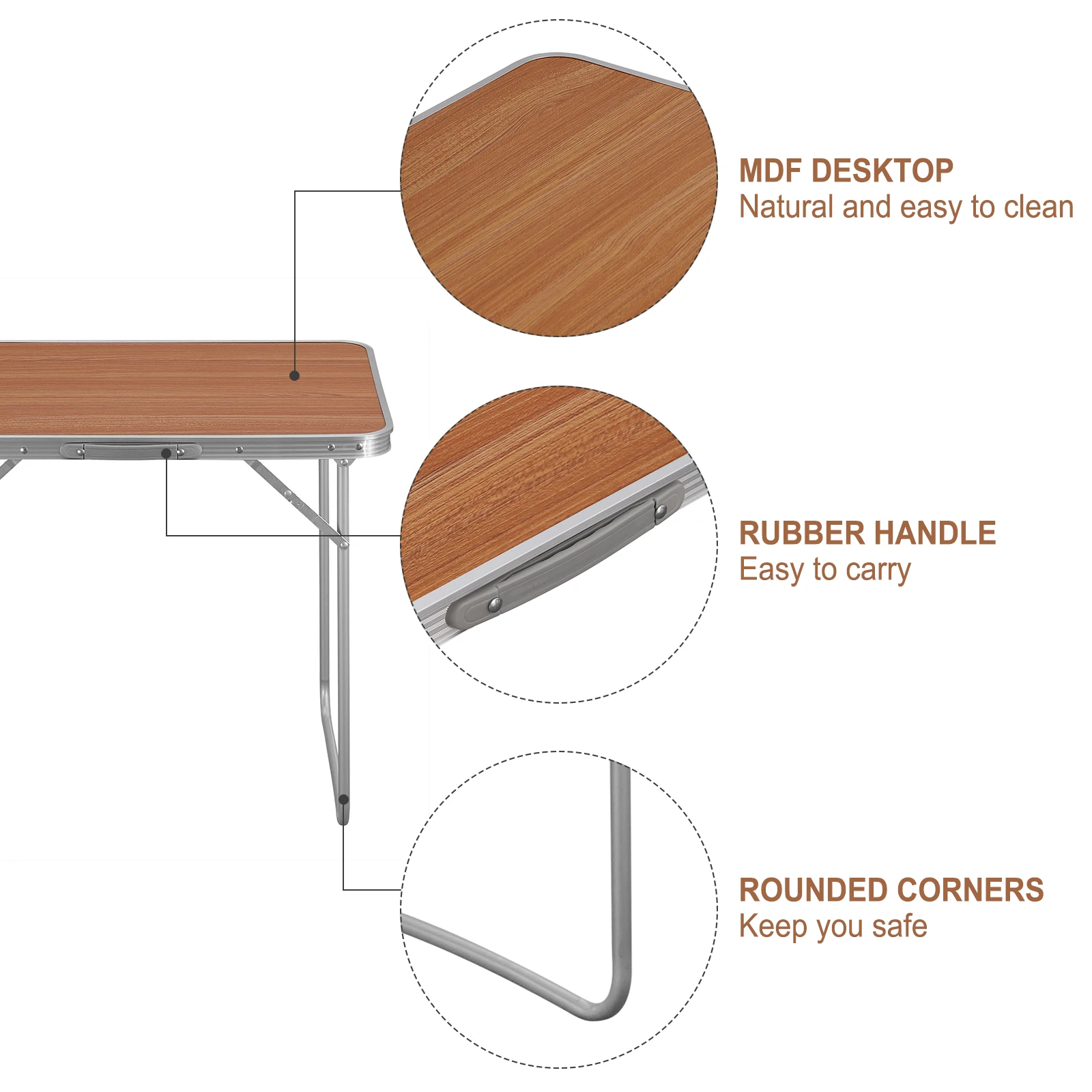 Buona fattura: il piano da tavolo è realizzato in MDF con rivestimento impermeabile.Si prega di non lasciare acqua sulla superficie del tavolo per un lungo tempo e non mettere al tavolo all’esterno quando si piove.I angoli del tavolo sono arrotondati per prevenire lesioni.I bordi protettivi sono appositamente allargati per nascondere le gambe piegate.