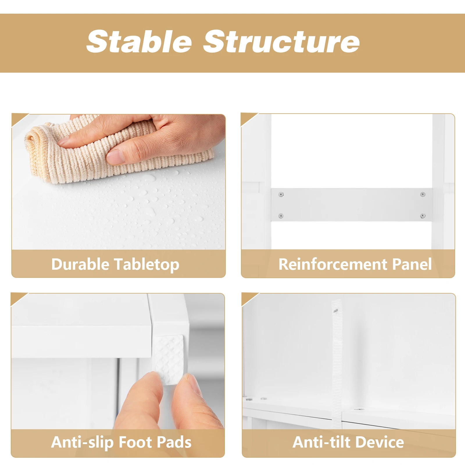 Alta qualità: la toeletta con specchio realizzato in materiale di legno E1 è resistente e durevole.Il piano da tavolo ben realizzato è resistente all’abrasione, idrorepellente e facile da pulire.La protezione dell’inclinazione fornisce stabilità aggiuntiva