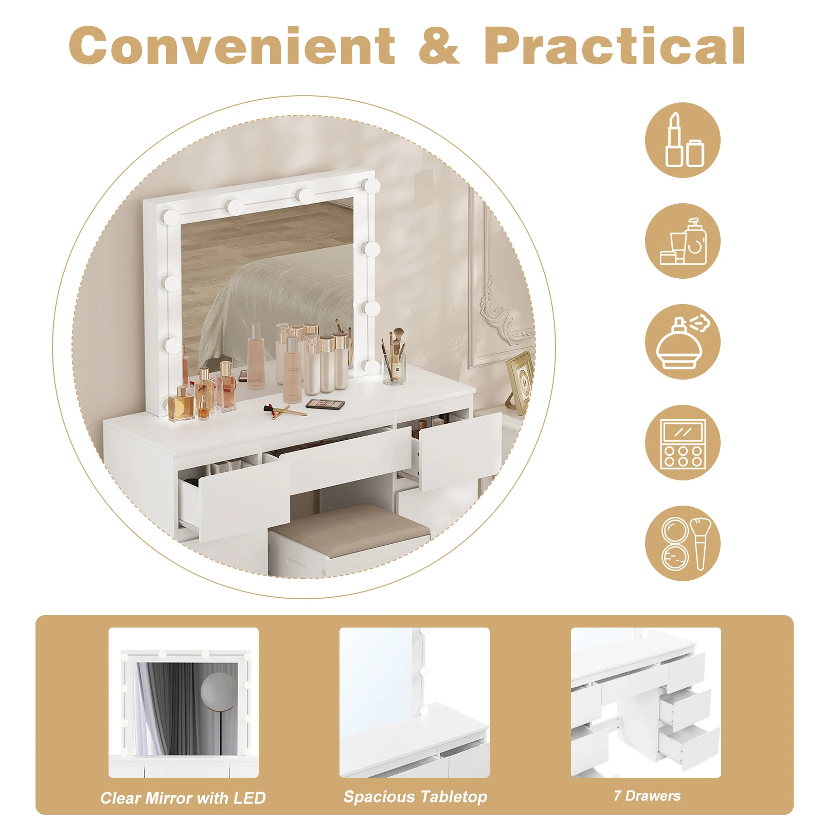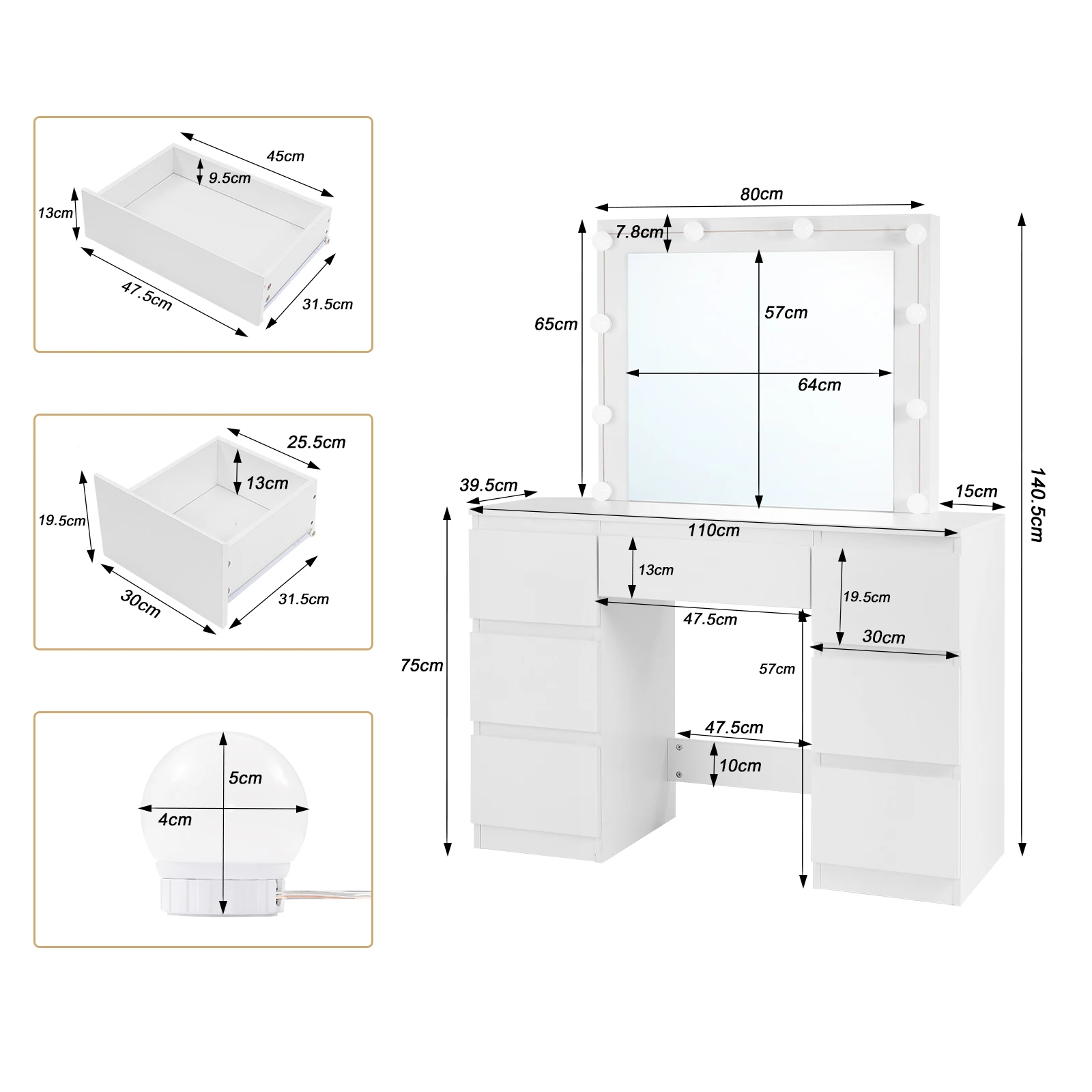 WOLTU Toletta con illuminazione a LED Luminosità regolabile Tavolo cosmetico Specchio grande 7 cassetti per ragazze Camera da letto donna