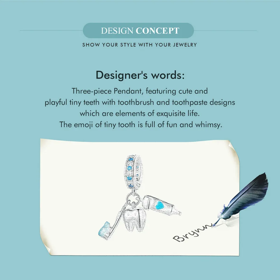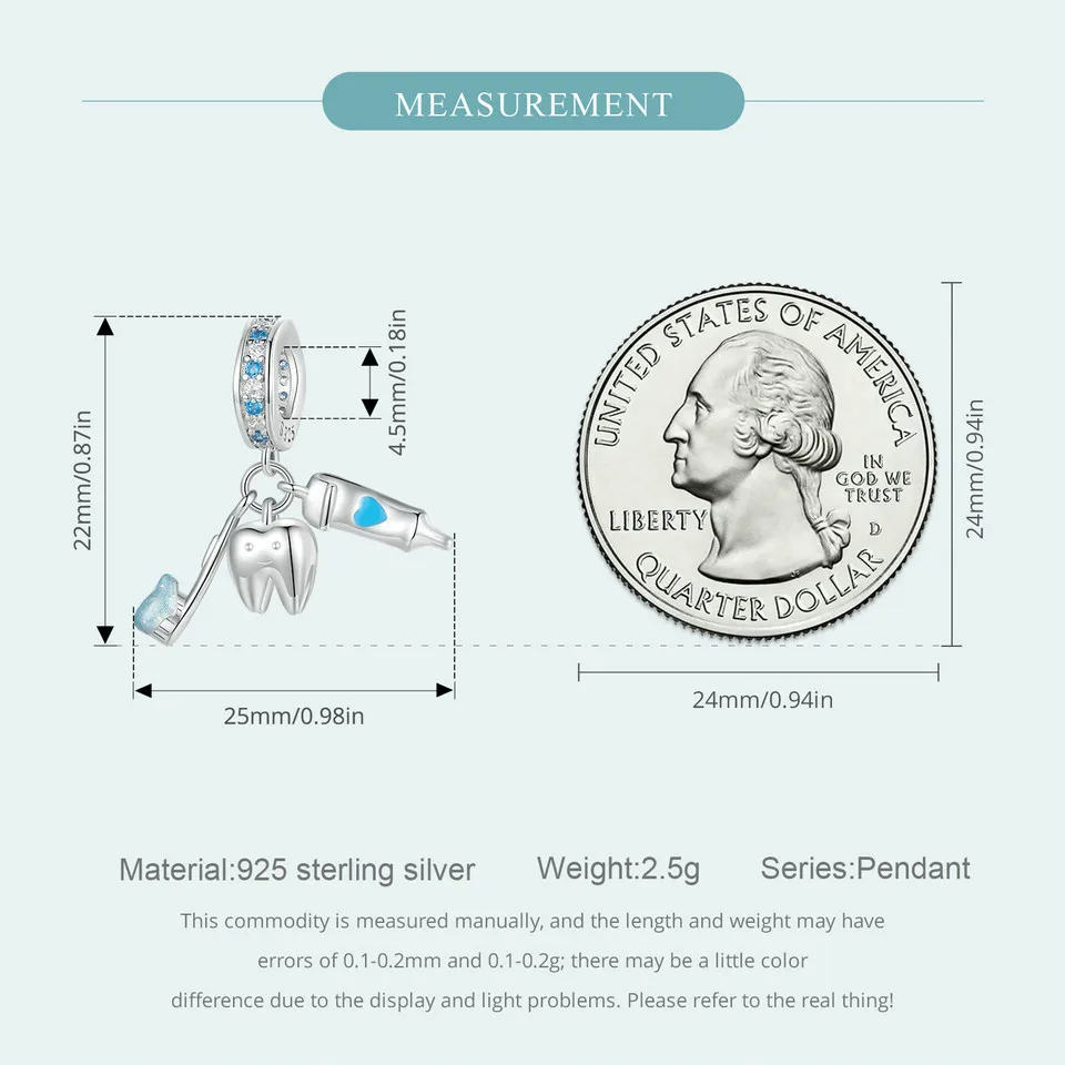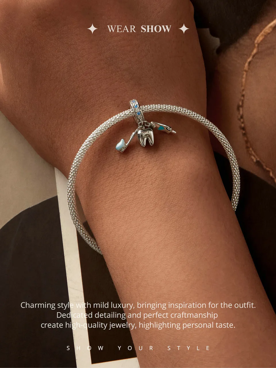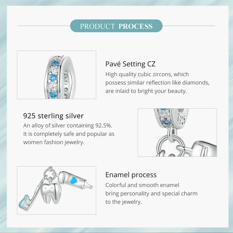 WOSTU 925 Sterling Silver Dente Spazzolino Dentifricio Ciondolo Pendenti e Ciondoli Perlina Blu Misura Braccialetti Originali Collane FAI DA TE Creazione di Gioielli