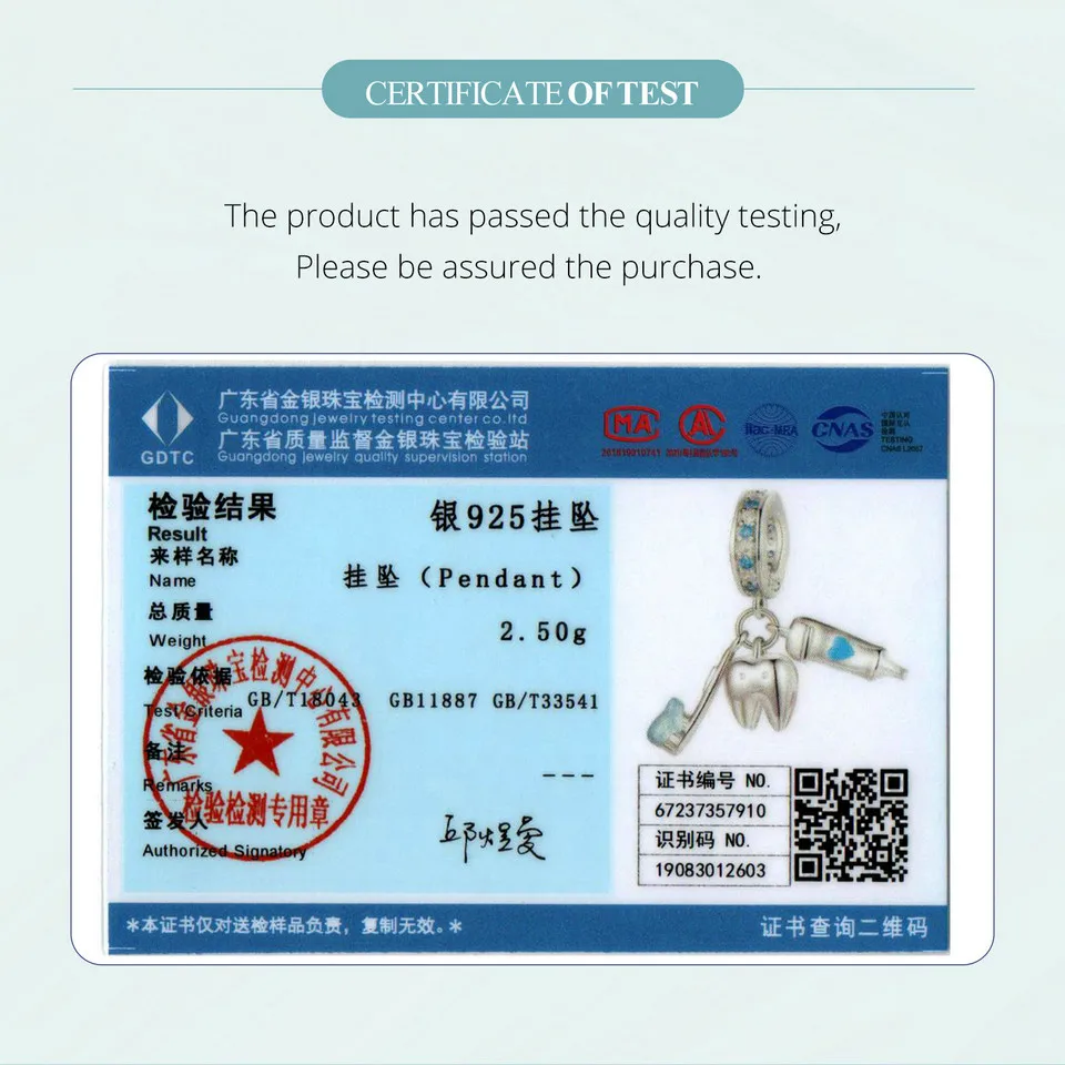 | Numero di Certificato | WOSTU 925 Sterling Silver Tooth Toothbrush Toothpaste Pendant Charms |