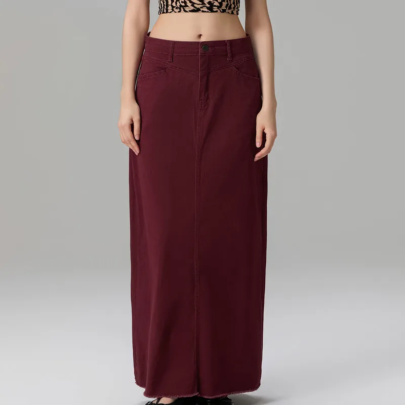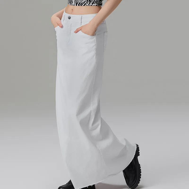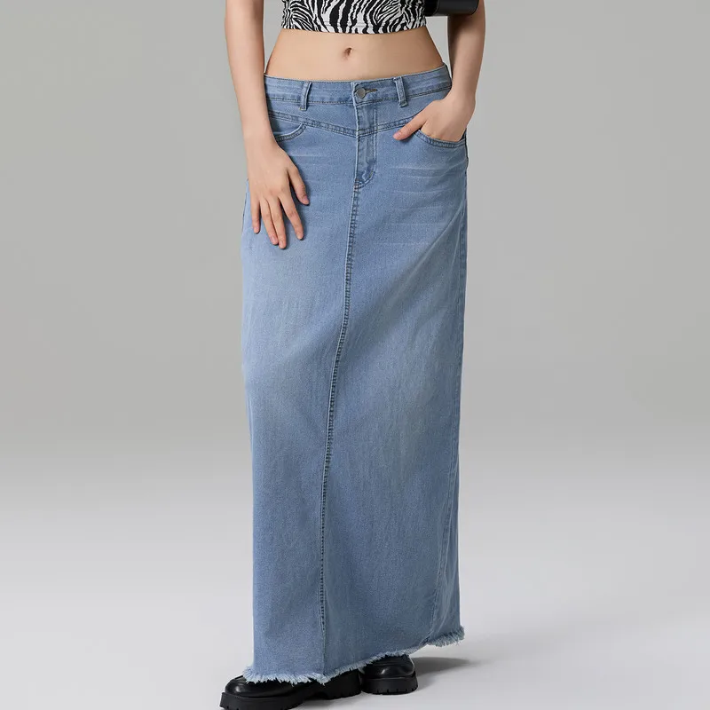 WPNAKS gonna di jeans a vita media da donna vestiti autunnali estivi gonna lunga a trapezio tinta unita con tasche per scuola, lavoro, Shopping
