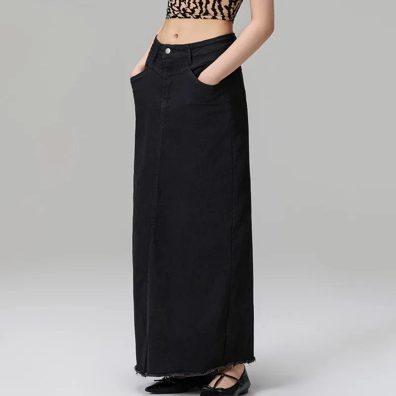 WPNAKS gonna di jeans a vita media da donna vestiti autunnali estivi gonna lunga a trapezio tinta unita con tasche per scuola, lavoro, Shopping 1WPNAKS gonna di jeans a vita media da donna vestiti autunnali estivi gonna lunga a trapezio tinta unita con tasche per scuola, lavoro, Shopping