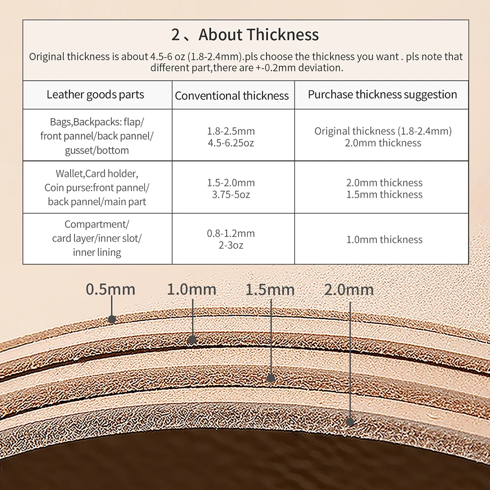 b.I pezzi di cuoio sono tagliati da un pezzo intero di cuoio,Durare la crescita di una mucca, quindi alcune imperfezioni,come graffi o cicatrici,grana naturale o rughe, ma, questo cuoio è stato selezionato per regalare bene per la maggior parte delle persone in pelle.ti preghiamo di contattarci se non è soddisfatto con la qualità.