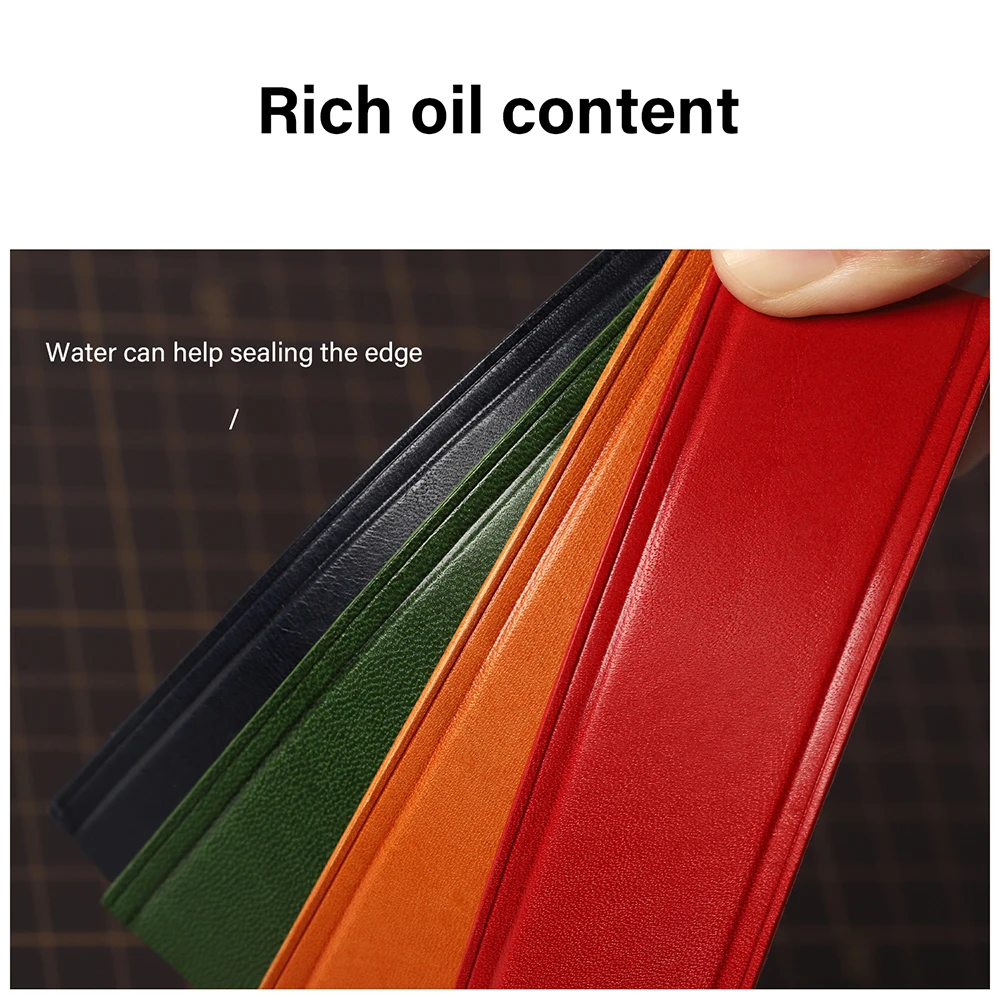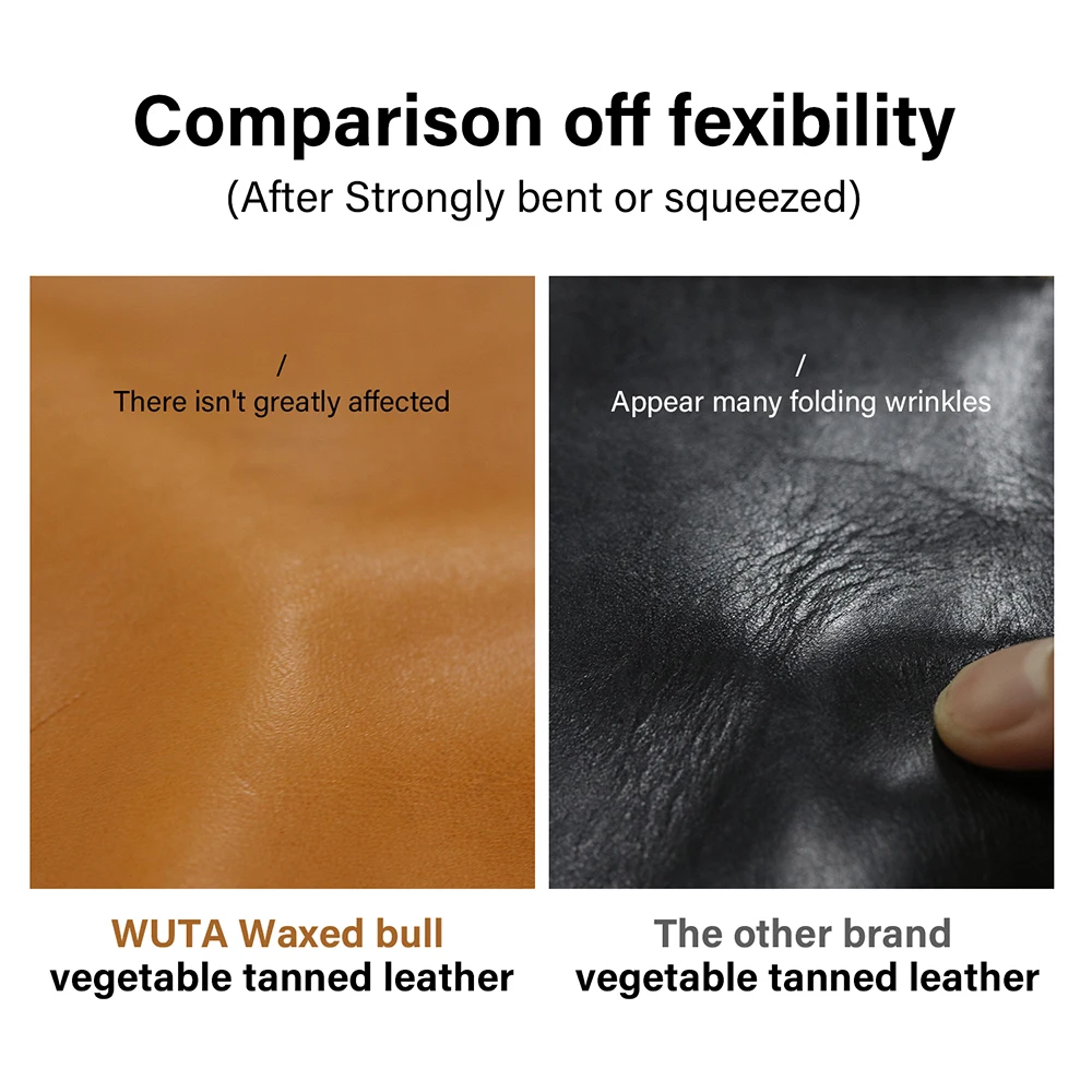 — La pelle conciata al vegetale di toro cerato è leggermente solida, ripiegabile e liscia, la superficie della pelle è stata sigillata con trattamento a cera, quindi sembra più liscia, bella.funziona fantastiche per realizzare portafogli, borse, custodie, fondine, fodere per coltelli, braccialetti e altri vari progetti artigianali.