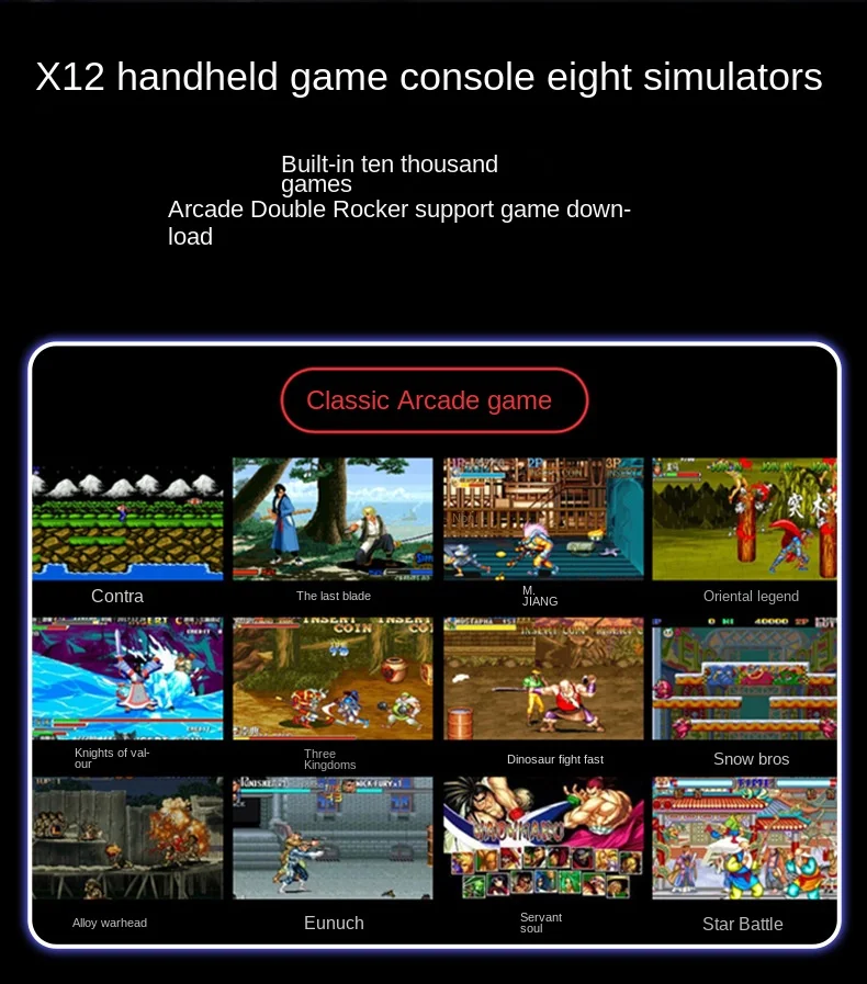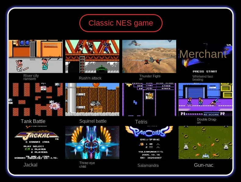 1.+ 2000 giochi Super Classic integrati: la console di gioco costruita in 2000 giochi classici, ti occupa del tempo di gioco con la tua famiglia e gli amici, ricordando i ricordi dell’infanzia.
